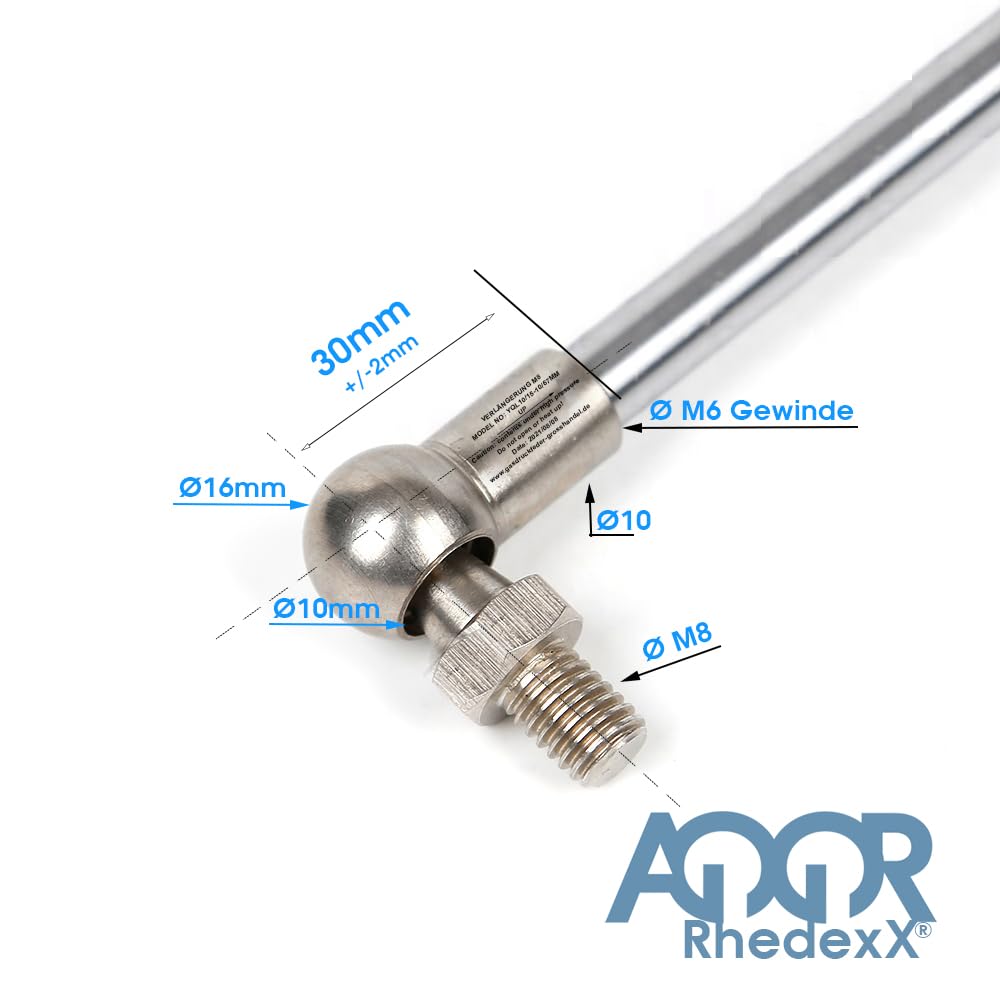 Vérin à gaz pour l'ouverture et la fermeture parfaites des volets, portails, portes et bien plus encore. Couleur : noir, gris argenté , Embouts dévissables RhedexX® Vérin à gaz - Longueur : 470 mm - Course : 190 mm - Force : 50N-800N - Avec anneau plat M6 - Rotule à rotule (470/190/700N RhedexX Vérin à gaz avec œil articulé plat M8 315 mm/120 mm/100N-1250 N Différentes variantes Vérin à gaz M8 plat œil articulé Les vérins à gaz sont disponibles en différentes variantes. Vérins gaz à oeil 8/8 mm longueur 538 mm Veuillez sélectionner ci-dessus la variante souhaitée Tous les vérins à gaz sont équipés d'un embout plat à œil - Diamètre du trou : 8,2 mm Vérin Gaz 440mm Course 170mm RhedexX® Vérin à Gaz - Vérin à Gaz Plat œil Articulé 420 Mm Vérin à Gaz 50N-800N Rechange Produit de qualité avec finition renforcée. Vérin à gaz avec œil articulé plat M6 Informations sur le produit : Forme compacte , Sans entretien