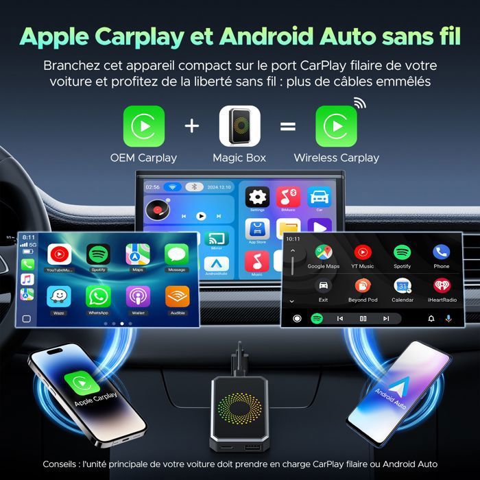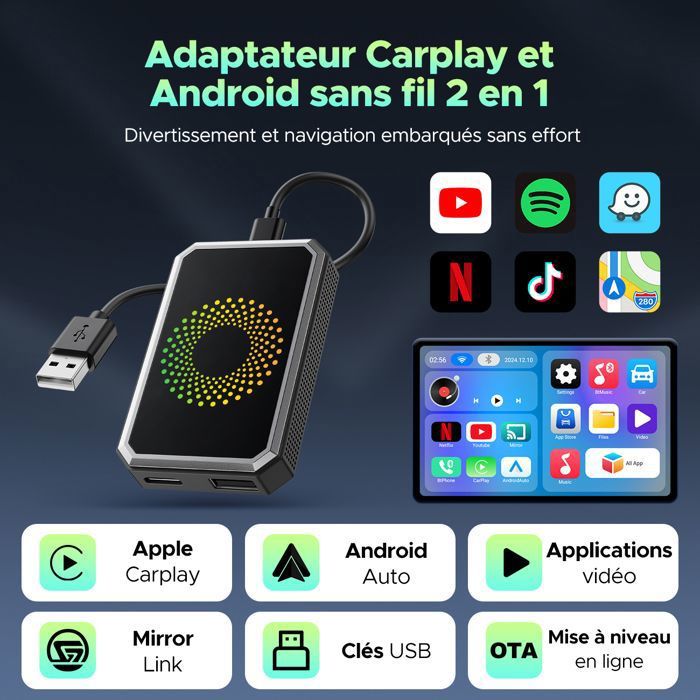 L'adaptateur de mirroring de téléphone à écran de voiture est conçu pour améliorer votre expérience de conduite en connectant votre smartphone à l'écran de votre véhicule de manière fluide. Applications Étendues et Polyvalentes Cet adaptateur vidéo voiture est compatible avec une vaste gamme de modèles automobiles, offrant une performance fiable et constante qui répond aux besoins de chaque conducteur. Ajustement Non Encombrant: Grâce à son design ultra-compact, l'adaptateur d'affichage pour voiture offre une présence non encombrante qui se parfaitement dans toute configuration de véhicule. Amélioration de la Sécurité Routière: Ce convertisseur d'affichage voiture minimise les distractions du conducteur en permettant une gestion des appels et des alertes de trafic en temps réel. En reflétant votre téléphone sur l'écran de la voiture, il offre un accès en temps réel aux applications importantes, sécurité et commodité sur la route. Achetez Adaptateur Carplay Android Auto sans fil 2 en 1, Type C/USB, Dongle de voiture Plug and Play, Bluetooth pour CarPlay filaire OEM sur Aliexpress pour . Trouvez plus de produits 34, 201673901 et 200000285 Adaptateur CarPlay sans fil et adaptateur Android Auto, plug Applications Étendues et Polyvalentes: Cet adaptateur vidéo voiture est compatible avec une vaste gamme de modèles automobiles, offrant une performance fiable et constante qui répond aux besoins de chaque conducteur. Réponse Sans Fil Sans Effort: Cet adaptateur sans fil pour voiture délivre une réponse sans fil accélérée avec zéro latence, un multitâche seamless dans le véhicule. Il crée un look propre et épuré, réduisant les distractions pour le conducteur pendant les trajets quotidiens. En raison des différentes mesures manuelles, veuillez prévoir une différence de taille de 1 à 2 cm. Convertisseur Miroir écran Auto Plug Play Générique Convertisseur D'Écran Auto - Convertisseur À Connexion Automatique Rapide - Adaptateur De Miroitage D Écran - Pour Trajets Quotidiens Conduite Urbaine Navigation Autoroute Streaming Musical écran Voiture Sans Fil Streaming Musique Alarme sans fil pour voiture - Sécurité Avancée Que vous naviguiez dans des rues animées ou que vous rouliez sur des autoroutes, cet adaptateur vous garde connecté tout en maintenant votre attention sur la conduite. Cette fonctionnalité assure une expérience de conduite plus sûre pendant les heures de pointe ou les trajets prolongés, en maintenant une vigilance constante. Spécification Nom : outil de mise en miroir d'écran Matériel: d'aluminium Taille du produit: environ 3x3 cm/1,18x1,18 pouces Liste des paquets : Adaptateur de voiture sans fil * 1 Remarque : En raison des différents paramètres d'éclairage et d'écran, la couleur de l'article peut être légèrement différente de celle de l'image. Taille du produit: environ 3x3 cm/1,18x1,18 pouces En tant que convertisseur fiable, il prend en charge la navigation sur autoroute, la diffusion de musique, les appels et l'assistance au stationnement avec des performances fluides. Son ajustement discret et intégré permet une installation sans gêne, optimisant la clarté visuelle et la sécurité durant la conduite, avec une totale dans l'habitacle pour une expérie