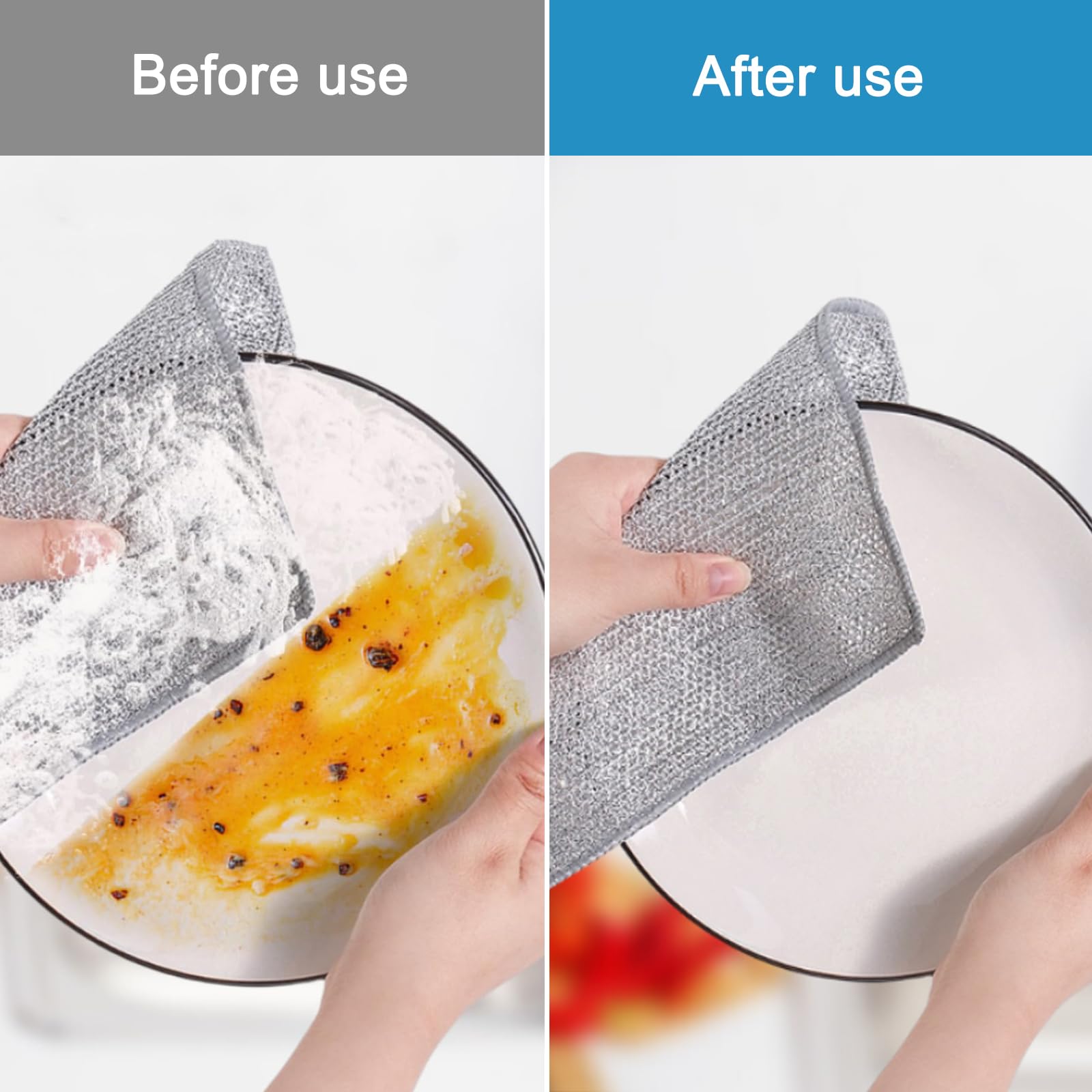 ANCLLO – Chiffons à Vaisselle en Fil métallique, 10 pièces, torchons réutilisables pour la Vaisselle, récureurs Anti-Rayures pour la Cuisine Alternativement, vous pouvez les utiliser directement pour vous attaquer aux grils, aux cuisinières et bien plus encore. Chiffon Fil Métallique Chiffons à Vaisselle En Fil Métallique Polyvalents, Torchon Nettoyage Anti-rayures Description :Ces chiffons à vaisselle en fil métallique réutilisables ne se limitent pas au seul nettoyage de la cuisine. De plus, ils sèchent rapidement et peuvent être facilement nettoyés pour votre commodité. Ils sont parfaits pour un large éventail de tâches de nettoyage, notamment les ustensiles de cuisine, les voitures, les appareils électroniques, les lunettes, les bijoux, l'acier inoxydable, les appareils électroménagers, les meubles et bien plus encore. Couleur. Argent · Marque. GWAWG · Type de forme de serviette. Torchon de cuisine · Matériau. fil · Dimensions du produit. 20L x 20l centimètres · Nombre d'articles 10 pièces Chiffon à Vaisselle En Fil de Fer,Torchon Multifonctionnel En Fil MéTallique Anti-Rayures,Torchon Fil MéTallique Anti Rayures,éLiminer Les Taches Profondes Sur Les Ustensiles de Cuisine Ils éliminent sans effort la rouille, les taches d'huile et la saleté tenace sans nuire à vos ustensiles de cuisine ou à vos mains. La surface en tissu en forme d'écailles de poisson de nos chiffons à vaisselle en fil métallique assure une absorption rapide de l'humidité, garantissant un nettoyage rapide et efficace. Spécifications :Taille : 20 x 20 cmLe forfait comprend :10 x chiffons à vaisselle en fil métallique