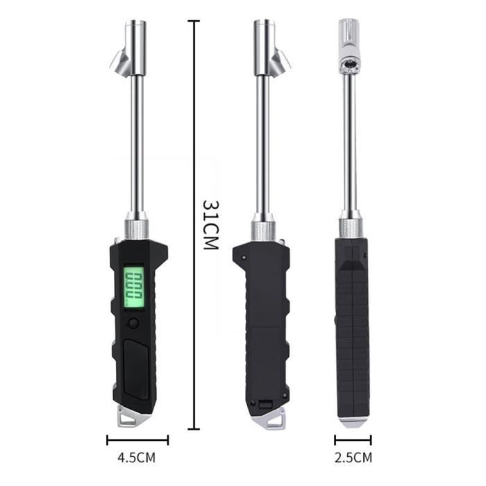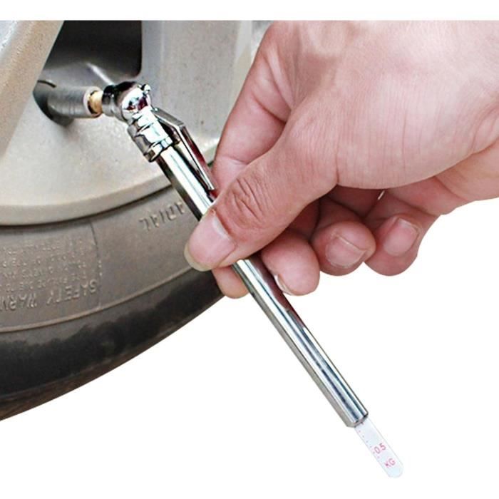 Le design de clip de poche le rend facile à emporter avec vous lorsque vous êtes au travail., 2., Le mandrin pneumatique vers l'avant de 30 est conçu pour les roues intérieures ou les vannes difficiles d'accès. Bikee Manomètre de pression des pneus, mandrin à double tête précise, jauge de pression d'air en acier inoxydable robuste avec une mesure maximale de 300 psi, outil pour SUV Caractéristiques La longue tige en acier inoxydable permet d'atteindre les roues intérieures sans se salir les mains., 3., Le manomètre d'air peut contrôler facilement et rapidement la pression des pneus en mettant le mandrin du manomètre sur la valve. Design : 30 Chuck d'air vers l'avant sont conçus pour les anneaux intérieurs ou les valves difficiles à atteindre. Après utilisation, tordez le bouchon de la valve et repoussez la plaque de . Manomètre Pneu Acier Inox Manomètre De Pression De Pneu Digital Motion Pro - DOOLISH Racing Parts Jauge 300 Psi Compacte Poche Ainsi, la graduée glisse dehors et vous pourrez lire la pression des pneus., 4., Les testeurs de pression des pneus sont des outils pratiques et pratiques pour les camions, bus, voitures, SUV, , tout-terrain, vélos (avec valve) ou motos., 5., Le manomètre de pneu est fabriqué en acier inoxydable haute résistance pour une performance durable. La tige longue en acier inoxydable vous permet d'atteindre l'anneau intérieur sans se salir les mains. Facile à utiliser : tournez et retirez le bouchon de la valve et appuyez sur le manteau du manomètre mécanique contre la valve, la plaque de glisse et vous pouvez lire la pression du pneu de la plaque en . Caractéristiques : Nom du produit: Détecteur de pression des pneus de voiture Couleur du produit : argenté Dimensions du produit : environ 14 x 2 x 0,8 cm Matériau du produit : acier inoxydable Plage d'affichage à pression: 300 psi Poids du produit : environ 18 g Moi compatibles : universel Utilisation du produit : stylo de pression des pneus de voiture Caractéristiques du produit : sans batterie, prêt à l'emploi, compact et portable Liste des produits : 1 stylo de test de pression des pneus de voiture Remarques : 1., En raison des différents écrans et effets de lumière, la couleur réelle de l'article peut être légèrement différente de la couleur des images., 2., Les mesures étant prises à la main, les tailles indiquées peuvent varier légèrement. TEST DE PRESSION d'air pneu jauge stylo pneu compteur de test diagnostic réparation voiture ToAH La conception du clip de poche facilite le transport lorsque vous êtes au travail. Matériau en alliage d'aluminium:Conçu en aluminium durable, ce stylo pression pneu est robuste et fiable. Précision 5-50 PSI:Assurer une pression de pneu de...