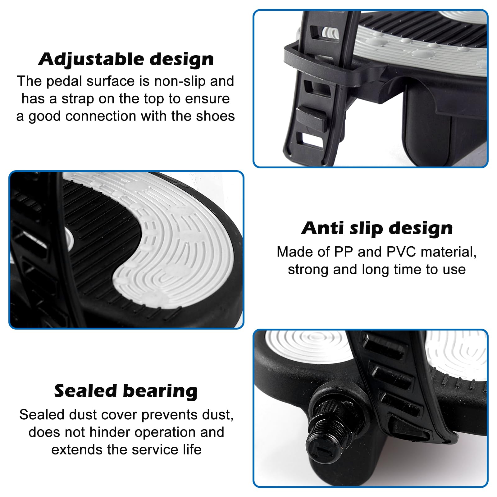 * Facile à installer : les pédales sont clairement marquées comme gauche et droite, ce qui vous permet de les identifier et de les installer correctement. * Spécifications des pédales : nos pédales ont une broche de 9/16 ou 1/2, ce qui les rend adaptées à tous les vélos à broche 9/16 ou 1/2, y compris les vélos d'exercice d'intérieur et les vélos de spinning. Système d'installation facile : pédales de vélo d'appartement clairement marquées à gauche et à droite pour éliminer la confusion lors de l'installation. Compatibilité avec différents vélos : pédales de vélo. *Excellent contrôle : la pédale est conçue avec une texture antidérapante, offrant une meilleure prise en main et stabilité pendant vos entraînements. Description du produit Contenu de l'emballage : 1 paire de pédales de vélo, 1 paire de sangles. Caractéristiques : - Matériau : pièces de rechange pour vélo d'appartement en polypropylène. - Dimensions : 30 x 4 x 0,30 cm - Pédale d'exercice de bureau pour vélo. - Pédales antidérapantes : les pédales sont conçues avec des caractéristiques antidérapantes pour améliorer la... Pédales vélo appartement noires avec sangles ajustables Ces pédales disposent d'une broche de 9/16 ou 1/2, ce qui les rend adaptées à la plupart des vélos d'exercice d'intérieur et vélos de spin avec des spécifications de broche correspondantes. Disponible en trois options de taille (A : 136 x 108 x 53 mm ; B : 150 x 150 x 70 mm ; C : 162 x 148 x 52 mm) pour répondre à vos besoins spécifiques d'équipement d'exercice, ces pédales offrent une performance fiable pour votre installation de fitness à domicile. Ce design bien pensé vous aide à identifier rapidement quelle pédale appartient de chaque côté de votre vélo, résultant en une installation simple et vous ramène à votre routine de fitness plus rapidement. Contenu de l'emballage : 1 paire de pédales de vélo d'appartement. Pédales Vélo Stationnaire Sangles Réglables Pédales De Cyclisme D'intérieur Avec Sangles Réglables Antidérapantes Sangles Caoutchouc Sécurisées La surface de la pédale antidérapante et les sangles en caoutchouc vous protègent des glissades soudaines pour un excellent contrôle lors du pédalage de votre vélo. Le forfait comprend Caractéristiques : * Nom de la pièce : pédales de vélo d'appartement. Les sangles peuvent supporter un pédalage rigoureux, un ajustement sûr et confortable. * Taille : A : 136 x 108 x 53 mm ; B : 150 x 150 x 70 mm ; C : 162 x 148 x 52 mm., Couleur : noir. Caractéristiques : * Matériau : les pédales sont fabriquées avec des matériaux de haute qualité et sont livrées avec des sangles en caoutchouc réglables, offrant une durabilité et vous permettant de personnaliser la longueur pour l'adapter à votre chaussure. Il suffit de vérifier la marque avant de remplacer les pédales, un processus d'installation sans tracas. Construction durable : pédales de vélo d'exercice fabriquées avec des matériaux de qualité supérieure pour résister à une utilisation quotidienne rigoureuse à diverses intensités d'entraînement.