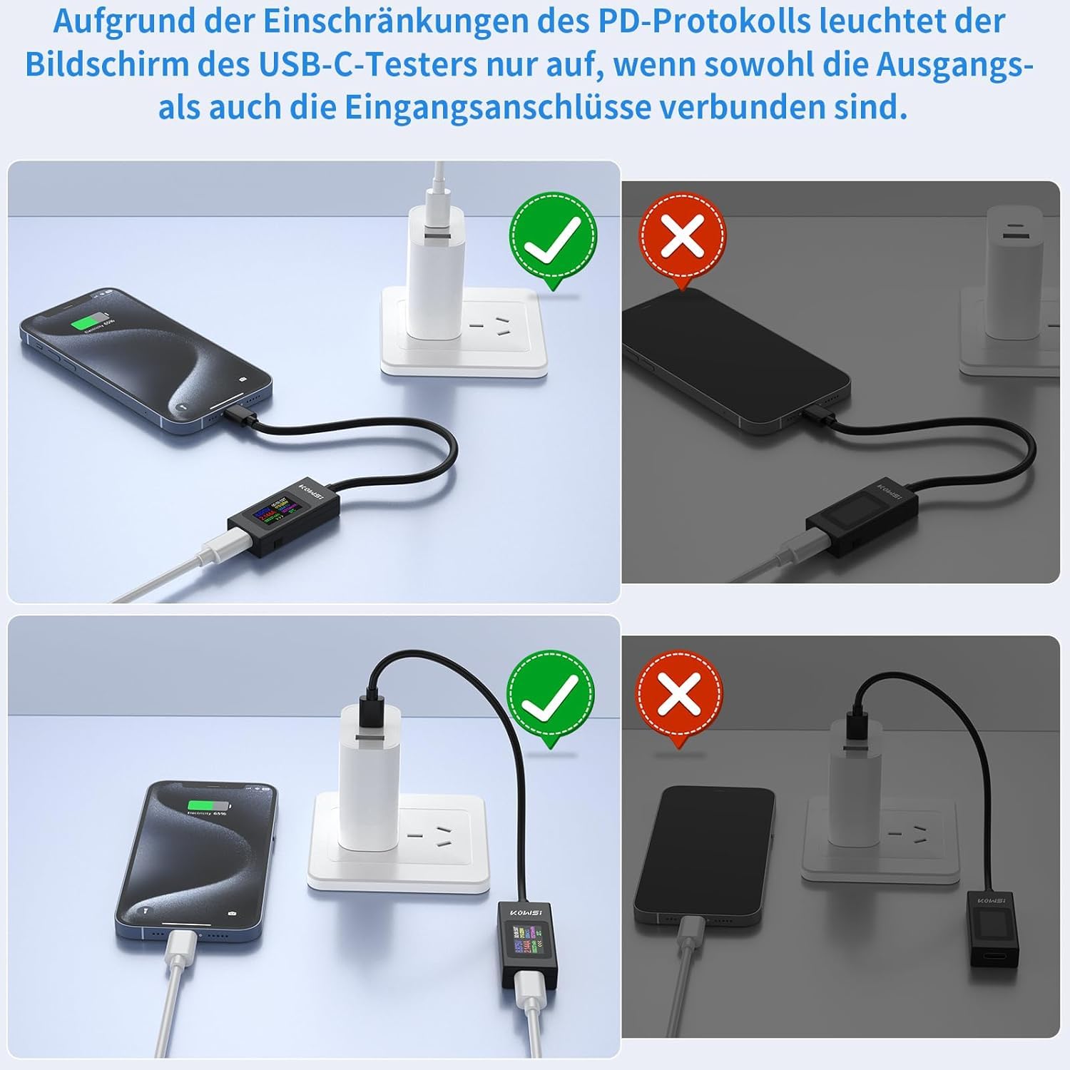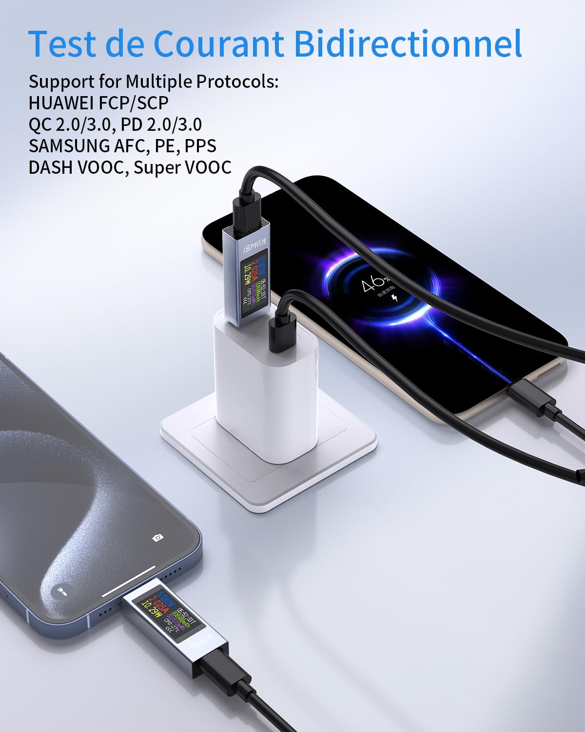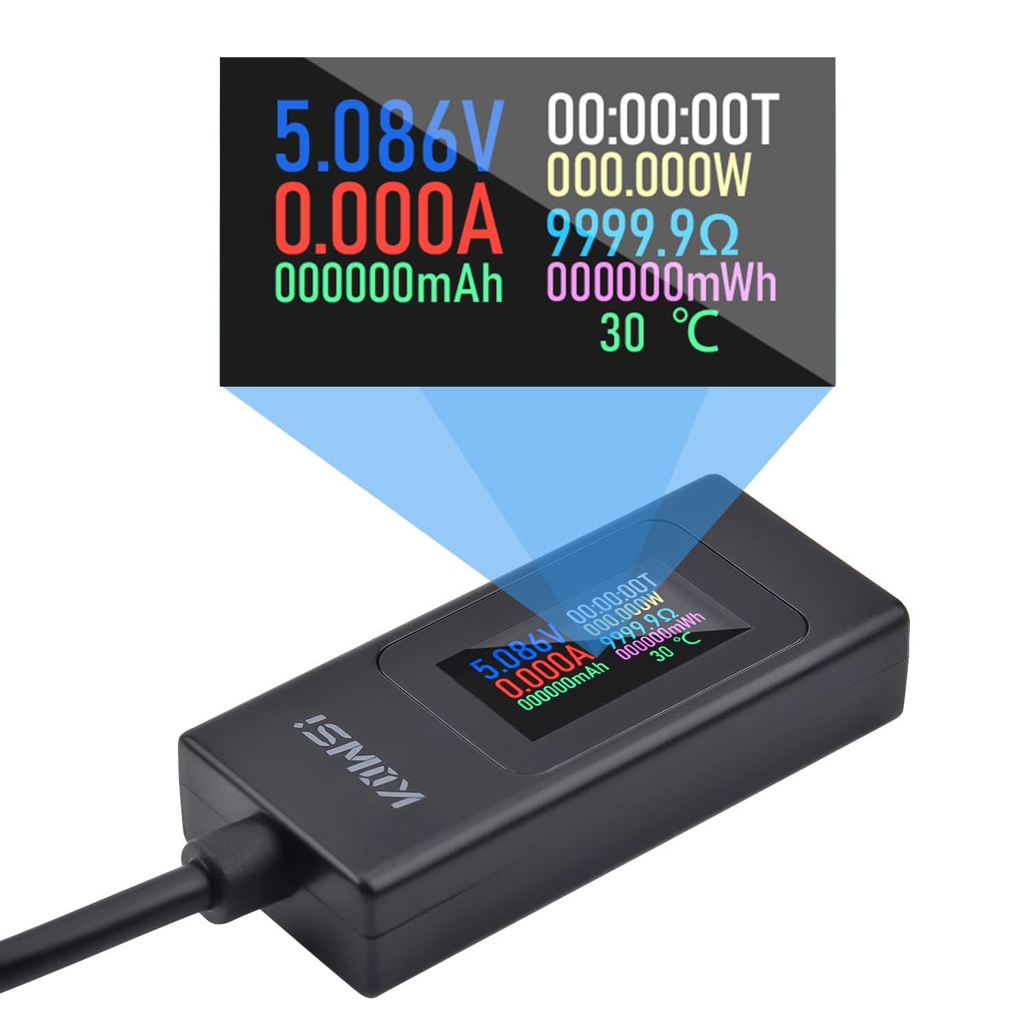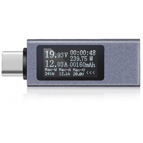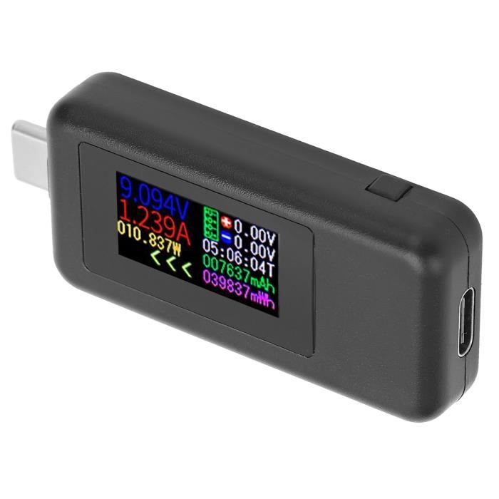 4) Données de mesure garanties : fonction de stockage hors tension qui stocke les données de capacité et d'énergie lorsque l'alimentation mobile est éteinte, ce qui est pratique pour la visualisation ultérieure et pratique pour la mesure d'énergie de capacité de l'énergie mobile. Les données peuvent être enregistrées toutes les 30 secondes après la mise hors tension. Multifonction : ce testeur USB portable est conçu pour détecter la tension, le courant, la capacité, la quantité électrique, la puissance, la température, la résistance, le temps de charge et d'autres données des appareils USB C, ce qui est pratique pour tester l'alimentation et la qualité Duokon Testeur USB Testeur de chargeur USB Voltmètre Ampèremètre... Fonction bouton : cliquez sur le bouton pour afficher la puissance, le watt-heure et la capacité. TESTEUR USB TYPE-C VoltmèTre NuméRique DC AmpèRemèTre Courant Tension Détecte divers protocoles de charge rapide : le testeur USB Type-C USB de taille compacte avec écran LCD prend en charge le protocole QC2., 0/3., 0/4., 0 et Super VOOC, mais le nom du protocole de charge rapide ne sera pas affiché sur le testeur USB. Multifonction : ce testeur USB portable est conçu pour détecter la tension, le courant, la capacité, la quantité électrique, la puissance, la température, la résistance, le temps de charge et d'autres données des appareils USB C, ce qui est pratique pour tester l'alimentation et la qualité. Mesure Tension Courant Capacité Testeur De Jauge De Puissance USB C, Testeur De Charge D'amplimètre De Voltmètre USB, Tension USB Et Moniteur De Courant Avec Câble Tressé USB C Vers USB C (1,5ft/50cm) - Test Câble Ampèremètre Voltmètre USB Multifonction : ce testeur USB portable est conçu pour détecter la tension, le courant, la capacité, la quantité électrique, la puissance, la température, la résistance, le temps de charge et d'autres données des périphériques USB C, ce qui est pratique pour tester l'alimentation et la qualité. Contrôleur de batterie USB de type C - Tension - Courant - Capacité d'alimentation - Ampèremètre - Voltmètre - Câble USB - Détecteur de charge - Testeur USB-C 4-30 V 0-6,5 A - Multimètre numérique 1) Fonction du bouton : cliquez sur le bouton pour afficher la puissance, le watt-heure et la capacité. Le produit dispose d'une fonction de mémoire automatique lors de la mise hors tension.