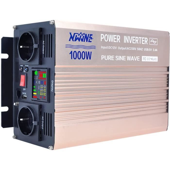 【Silencieux et économe en énergie】 convertisseur de tension1000 W est équipé d'un ventilateur intelligent à commande thermique qui assure un refroidissement optimal et efficace. Convertisseur de tension pur sinus 12V-220V 1000W COTEK EN STOCK : Convertisseur pur sinus 12 V 220 V Onduleur 1000 W Écran LCD Transformateur de tension 12 V 220 V avec télécommande et deux ports USB, E19221010RLEU0V3 pas cher. Livraison rapide partout en France Qnduleur 12v 220v fournit une puissance continue de 1000 W CC à CA jusqu'à 2000 W. 【Onde sinusoïdale pure】 convertisseur 12v 220v pur sinus fournissent une puissance stable et continue qui offre à une multitude d'appareils la même tension stable que le réseau électrique, ce qui contribue à protéger et à prolonger la durée de vie des appareils et équipements électroniques. Le convertisseur de tension pur sinus 12V-230V 1000W de COTEK pour appareils électroniques et petits électroménagers 220V à partir d'une source 12V. sécurité empêchant l'inversion de la polarité (via un fusible), la surcharge et le court-circuit 【Qualité fiable】 Le boîtier métallique robuste protège transformateur 12v 220v, et le ventilateur à grande vitesse garantit le fonctionnement de l'onduleur à basse température avec une onde sinusoïdale pure. convertisseur 12v 220v 1000W Onduleur pur SIM lit 1 prise UE thd 2 1SB Chargeur de voiture De Ac l convertisseur Transformateur de courant 2000 W (crête) pour voiture, caravane, bateau, camping Convertisseur Pur Sinus CONVERTISSEUR 12V 220V Pur Sinus 1000W/2000W Onduleur 12v 220v Pur Sinus 1000w 2000w Onduleur 12v 326108352328 Protection Surchauffe Surcharge