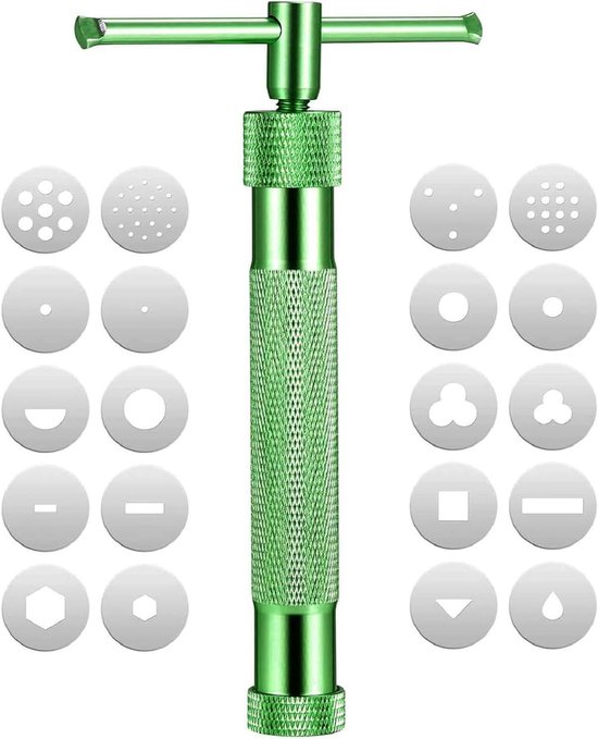 Nudelmaschine aus Edelstahl - Presse à nouilles acier inox (Neu und Outil Pâte à Sucre Fimo Argile Extrudeuse Argile Avec 20 Disques Kit Pâte à Sucre Et Argile NA Presse à Argile Avec l'extrudeuse de pâte à sucre, ils forment un ensemble d'outils parfait pour les bricoleurs, les pâtissiers amateurs et les amateurs de bricolage. Caractéristiques : Caractéristiques : 1., Portable et de haute qualité : outil de presse d'argile (extrudeuse de pâte à sucre) en alliage d'aluminium, facile à transporter et durable, sans danger pour les projets créatifs de bricolage et de pâtisserie., 2., Ensemble complet : comprend une extrudeuse et 20 disques, s'adapte à toutes les argiles; Lames en acier au carbone pour des coupes flexibles, idéales pour de multiples décorations., 3., Multi-usage : convient comme presse-argile pour l'argile céramique et comme extrudeuse de pâte à sucre pour pâte à sucre/gâteau fondant – polyvalent pour les travaux manuels et la pâtisserie. Design rotatif et portable : l'outil de pressage d'argile de haute qualité (également utilisable comme extrudeuse de pâte à sucre) est fabriqué en alliage d'aluminium, léger et facile à transporter. L'extrudeuse en acier inoxydable avec ses 20 moules interchangeables permet de créer des formes parfaites pour la pâte à sucre, la pâte polymère ou l'argile Il est parfait pour les déplacements ou à la maison pour réaliser des projets d'artisanat de manière flexible. Flexible et durable : les lames de trancheuse d'argile polymère sont fabriquées en acier au carbone de haute qualité, la longueur et la flexibilité offrent de nombreux types de coupes incurvées. Un must pour la création de différents projets fimo Flexible et durable : les lames de la trancheuse d'argile polymère dans le kit d'extrudeuse de pâte à sucre sont fabriquées en acier au carbone de haute qualité, offrent longueur et flexibilité pour différentes coupes incurvées - durables et fiables pour une utilisation plus fréquente. Couleur : vert Matériau : alliage d'aluminium Dimensions : longueur : 16,5 cm (6,5 pouces), largeur : 10 cm (3,9 pouces, au point le plus large) Diamètre extérieur inférieur : 2 cm (0,78 pouces), diamètre intérieur inférieur : 1,4 cm (0,55 pouce) Liste d'emballage : 1 x kit d'argile pour presses à argile, 20 x disques d'extrudeuse