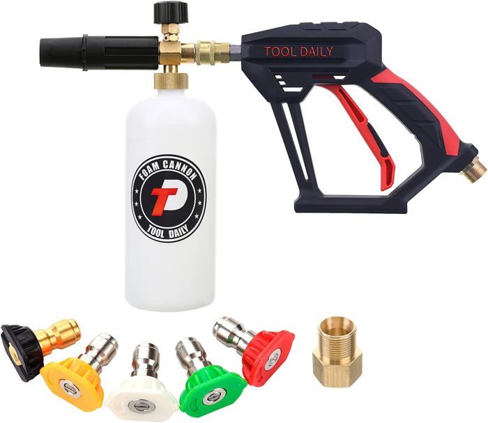 Il garantit une performance constante et fiable pour toutes vos tâches de nettoyage. EN STOCK : Pistolet haute pression pour nettoyage pas cher. Grand choix, promos permanentes et livraison rapide partout en France. Paiement sécurisé Cet outil polyvalent est conçu pour une connexion transparente aux compresseurs d'air et fonctionne avec une pression optimale de 0,7 MPa (60 à 160 psi), ce qui garantit une puissance puissante et constante pour tous vos besoins de nettoyage. CONCEPTION ERGONOMIQUE ET FACILE À UTILISER: Conçu avec un souci de confort, le pistolet pulvérisateur dispose d'une poignée ergonomique qui s'adapte naturellement à votre main et réduit la fatigue lors d'une utilisation prolongée. Double contrôle du flux d'air pour la précision : grâce à un système de double commande, vous pouvez régler la vitesse du flux d'air non seulement avec la gâchette, mais aussi via le régulateur de flux d'air. NETTOYAGE EFFICACE POUR PLUSIEURS SURFACES : équipé d'une brosse pour un accès facile aux espaces étroits, ce pistolet pulvérisateur est doux pour les surfaces délicates telles que le velours, tout en offrant un nettoyage puissant pour les meubles ménagers, les voitures et les machines d'usine. Il permet d'économiser du temps et des efforts et rend les tâches de nettoyage plus rapides et plus efficaces. 5 Couleur Buses] Le pistolet de pulvérisation pour nettoyeur haute pression avec 5 buses de couleur - 0 degré (rouge), 15 degrés (jaune), 25 degrés (vert), 40 degrés (blanc), répond à vos différentes largeurs de pulvérisation et à toutes sortes de besoins de nettoyage Conçu pour durer, le pistolet dispose d'un connecteur en cuivre robuste de 3,5 mm d'épaisseur et d'un boîtier renforcé, ce qui le rend pratiquement incassable même en cas de forte sollicitation. Nettoyeur Haute Pression 21V Sans Fil Blanc Avec Batterie 3.0Ah Et Pistolet Tornado Pistolets De Lavage Haute Pression - Solutions De Nettoyage Efficaces Nettoyage Intérieur Voiture Moto Son design robuste garantit qu'il ne se casse pas et ne s'use pas facilement, même en cas de forte sollicitation. Que vous vous occupiez des meubles ménagers, des intérieurs de voiture ou des machines d'usine, cet outil offre une puissance de nettoyage exceptionnelle sans endommager les surfaces délicates telles que le velours. Prenez le contrôle avec le double système de flux d'air. Mais ce n'est pas tout : notre pistolet dispose également d'un connecteur rotatif à 360 ° en métal robuste qui permet au tuyau d'air de se déplacer librement sans s'user ou s'abîmer. Améliorez vos compétences de nettoyage dès aujourd'hui et découvrez la différence avec notre pistolet de nettoyage de voiture haut de gamme – Efficacité, durabilité et confort en un.