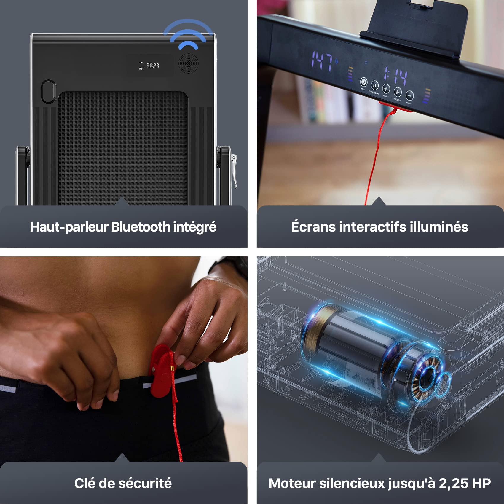 Télécommande et commande tactile: vous pouvez allumer / éteindre la machine ou régler la vitesse à l'aide de la télécommande ou du panneau de commande tactile Mobvoi Home Treadmill Caractéristiques Conception pliable pour un rangement facile: économisez de l'espace en rangeant la machine sous le lit ou le canapé Tapis De Sport Tapis De Course Mobvoi Walking Pad - Portable 1-6 Il réduit efficacement les chocs et ne nécessite aucune installation. Découvrez le Tapis de Course Mobvoi Home, un équipement polyvalent et pratique idéal pour votre entraînement à domicile. Ce tapis de course combine fonctionnalités avancées et design compact pour répondre à vos besoins en matière de remise en forme Tapis De Marche Pliable Mobvoi Home Tapis De Course, Haut-Parleur Bluetooth Intégré, Télécommande, Machine De Marche Et De Course Pour L'exercice De Fitness à Domicile En Intérieur En Destockage Et Reconditionné Chez Vivez l'entraînement ultime avec le Home Treadmill Plus. Doté d'une zone de course étendue, de modes marche et course, et d'options de contrôle à distance et manuel, ce tapis de course offre polyvalence et praticité