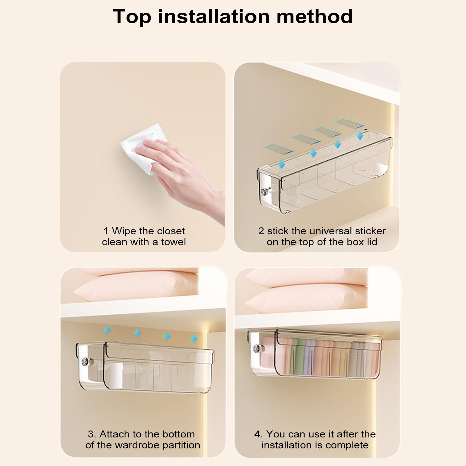 Quantité : 1 pièce Contenu de l'emballage : 1 boîte de rangement. Convient pour : parfait pour les personnes occupées qui ont besoin de rester organisées, notre boîte de rangement pour ceux qui veulent trouver rapidement leurs chaussettes, bijoux ou sous-vêtements sans aucun problème. Organiseur de soutien-gorge et sous-vêtements : avec un couvercle transparent, il peut bien protéger vos sous-vêtements, soutien-gorge, chaussettes, etc Organiseur mural pour chaussettes Le matériau transparent vous permet de voir en un coup d'œil ce que vous stockez. Installation sans perçage : il suffit de coller les crochets autocollants inclus où vous le souhaitez et d'accrocher l'organisateur de tiroir à sous-vêtements dessus, pas besoin de percer des trous pour casser le mur. Il est robuste et ne tombe pas Remarque : Les mesures étant prises à la main, les tailles indiquées peuvent varier de 0 à 1 cm. NIBESSER Lot de 6 Organisateur de tiroirs, 1 Boite de Rangement Soutien Veuillez vous assurer que cela ne vous dérange pas avant de passer commande. Nos boîtes de rangement multifonctionnelles en plastique durable disposent de tiroirs pour gagner du temps, d'un couvercle anti-poussière et d'un corps transparent pour une visualisation facile. Organisateur De Sous-vêtements Organisateur De Tiroir En Tissu Pliable Organisateurs De Chaussettes En Tissu Souple Commode Tiroir Sparateur Bacs De Rangement Pour Chaussettes Culottes Soutien Gorge Lingerie Conomisez De Lespace 5f65d6ae5f13210846b42622 Spécifications: plastique Dimensions : environ 37 x 10,6 x 8,3 cm. Organisateur mural pour sous-vêtements, transparent, multifonction, pour chaussettes, soutien-gorge, bijoux, collier Caractéristiques : Produit de qualité supérieure. Tenez-vous et dites adieu aux tiroirs encombrés avec notre boîte de rangement murale pour sous-vêtements Nos boîtes de rangement multifonctionnelles en plastique durable disposent de tiroirs pour gagner du temps, d'un couvercle anti-poussière et d'un corps transparent pour une visualisation facile.