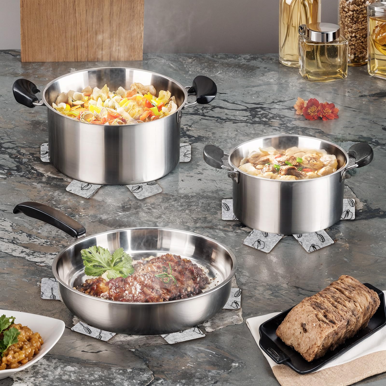 Lot 12 Protège-poêles Antidérapants LaBlanc – Protection Casseroles Et Protège-Poêle, 8 Pièces Poele Protection(38 CM), Premium Protections Casseroles Anti-rayures 🍽️ Champ d'Application: Ce protection casserole protege poele est polyvalent et idéal pour empiler des ustensiles de cuisine, de la verrerie, des produits de boulangerie, de la céramique, des casseroles, des bols, des assiettes, des tasses, etc. Protection parfaite pour stocker des pots, des pans, des grès, des pans, des bowls, des plats et plus encore. Ces pads de protection peuvent... Protection Contre l'empilage: Placez le coussinet de protection entre le pot et le pot pour éviter les rayures et prolonger la durée de vie du poêle. Les protège-poêles en feutre sont idéaux pour tous les types de poêles, casseroles et bols Le nombre de protege poele protection est suffisant pour vos besoins quotidiens. C'est un bonne aide pour économiser de l'espace dans la cuisine. Protection de poêles - Compléments, Poêles C'est très pratique. Anlising Protection Casseroles et Protège-Poêle, 12PCS Protege Poele Protection, Idéal pour Casseroles, Bols, Tasses Caractéristiques: 🍽️ Les protection casseroles et protège-poêle sont fabriqués à partir de fibres de polyester de haute qualité qui sont antidérapantes, résistantes à l'usure, réutilisables et ont une longue durée de vie. 🍽️ Matériel: Le protection casseroles et protège-poêle est fait de polyester de haute qualité, antidérapant à l'arrière et stable lorsqu'il est empilé. Il peut être lavé à la main à l'eau tiède et ensuite mis à plat pour sécher. Le protege poele protection est léger et facile à nettoyer. Les protege poele protection prennent peu de place et peuvent être empilés et placés lorsqu'ils ne sont pas utilisés sans prendre beaucoup de place. 🍽️ Conception Pratique: Le protection casseroles et protège-poêle a des propriétés antidérapantes, la conception en feutre de la surface du tapis peut réduire le glissement et le déplacement entre les casseroles, assurant la sécurité pendant le processus d'empilage. 🍽️ Les protection casseroles et protège-poêle ont une fonction antidérapante et ne sont pas faciles à déplacer lorsqu'ils sont placés entre les casseroles.