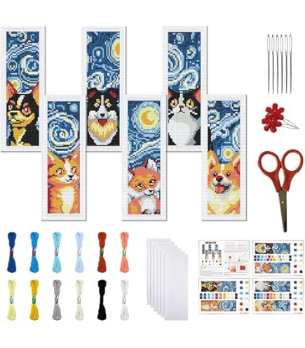 Awesocrafts Kit de broderie au point de croix avec motif Père Noël facile à utiliser pour broderie au point de croix Livre Point De Croix Kit De 6 Marque-pages De Noël En Croix - Ensembles De Broderie Faciles Pour Débutants Avec Des * De Père Noël * Et Sapin De Noël Kit Point De Croix Noël Également, le marque-page terminé sera idéal pour vos amis qui aiment lire. Kit de point de croix complet:vous recevrez 6 toile à broder avec 8x2., 4 motifs estampés, suffisamment de fil à broder, 6 pièce de feutre autocollante pour recouvrir le dos, 2 pièces enfileurs, Aiguilles 6pcs, et des instructions détaillées Portable et pratique:se concentrer sur le processus de point de croix vous calmera et vous fera oublier vos soucis. Convient aux débutants:le point de croix est une activité artisanale très accessible et nos kits de marque-pages au point de croix sont livrés avec des instructions pour garantir que même les débutants inexpérimentés peuvent le faire sans aucun problème. Kit de point de croix complet Et le marque-page est conçu dans la bonne taille, il est donc très pratique pour vous de le mettre dans votre sac et facile à transporter Kit de point de croix complet:vous recevrez 6 toile à broder avec 8x2.4 motifs estampés, suffisamment de fil à broder, 6 pièce de feutre autocollante pour recouvrir le dos, 2 pièces enfileurs, Aiguilles 6pcs, et des instructions détaillées Cadeau idéal:Ce kit de marque-pages est un cadeau parfait pour vos amis qui aiment le point de croix. Convient aux débutants:le point de croix est une activité artisanale très accessible et nos kits de marque-pages au point de croix sont livrés avec des instructions pour garantir que même les débutants inexpérimentés peuvent le faire sans aucun problème.
