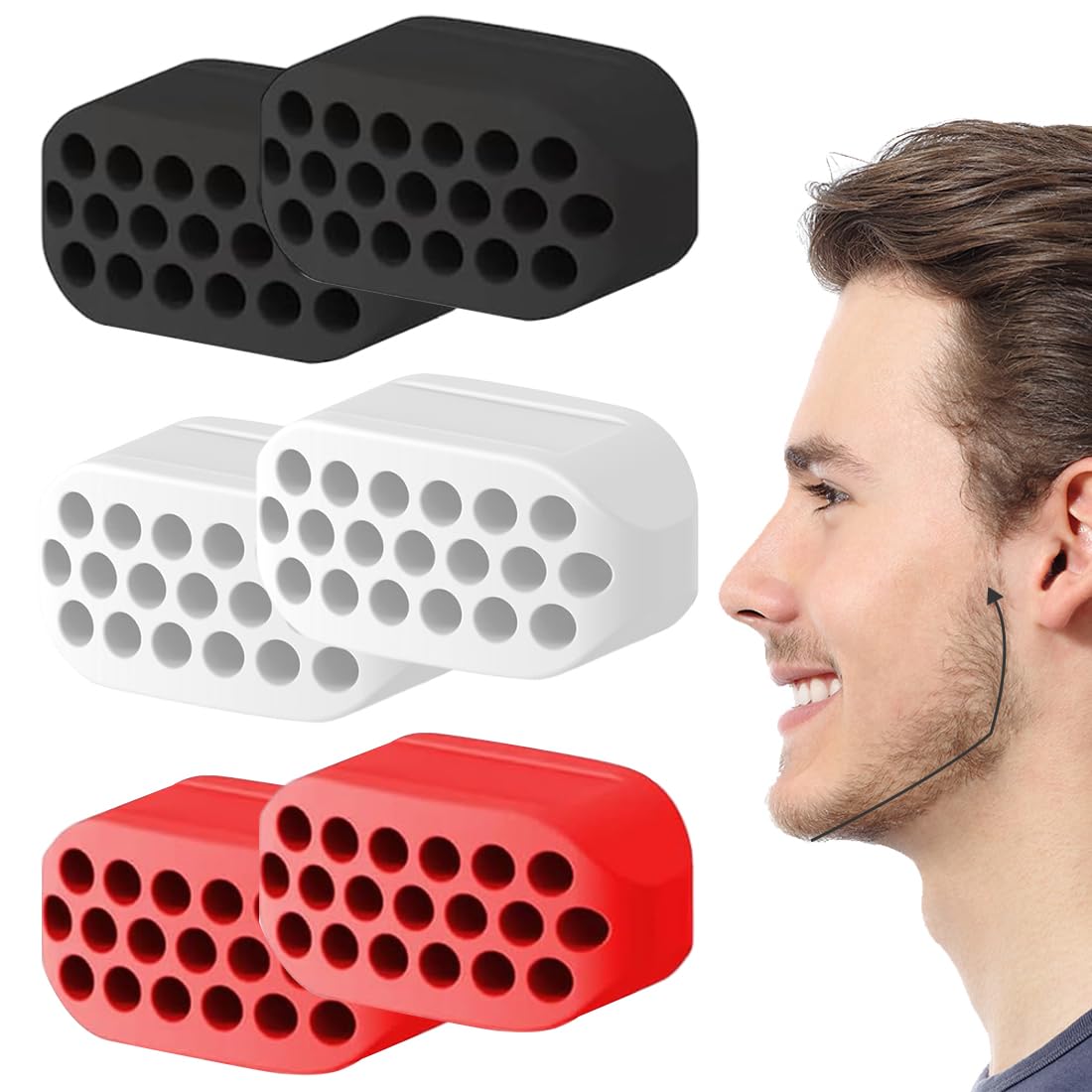 Guasha Pour Visage 6 Exercices Mâchoire Silicone - Renforcement Jawline - 40/50/60 Livres - Boîte Rangement Exercice Mâchoire Mewing Muscler La Mâchoire WeddHuis 6 Pcs Machoire Musculation, Muscler La Machoire Jawliner Jawliner Chewing Gum 💪【Package inclus】Vous recevrez 6 exerciseurs de mâchoire (2 noirs + 2 blancs + 2 gris). 💪【Safe Material】Made of food grade silica gel, safe and reusable after cleaning. L'effet sera plus visible après 1 à 3 mois d'entraînement régulier. 6 Pièces Muscler Machoire, Gomme Machoire Entraîneur Dispositif De Muscler Machoire Chewing Gum Musculation Machoire pour Renforcer et Resserrer la Mâchoire et Le Cou Femmes Hommes (avec Boîte 💪】Portable et léger】L'outil de mastication du cou est petit et pratique à transporter. Vous avez remarqué votre mâchoire moins dessinée ou moins tonique qu'avant ? Rassurez-vous, c'est un constat courant, autant pour des raisons esthétiques que pour la santé bucco-dentaire. Bonne nouvelle : il existe des exercices simples et accessibles à tous pour muscler sa mâchoire, renforcer l'ovale du visage et prévenir de nombreux petits désagréments quotidiens. Que vous... Faites de l'exercice n'importe où sans trop attirer l'attention. 💪【Instructions d'utilisation】Exercé 2 à 3 fois par jour pendant 10 à 15 minutes à chaque fois pour éviter d'endommager les muscles de la mâchoire et les dents.