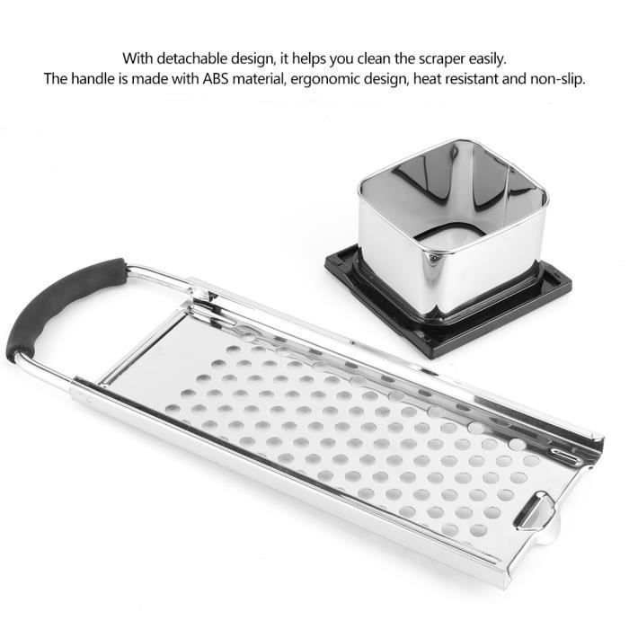 Coupe-frites en Inox Découpe Pomme de Terre En raison de différentes mesures manuelles, veuillez permettre une différence de taille de 1 à 2 cm. Dicer électrique pour uits, coupeur de carottes, trancheuse de concombre, hachoir à légumes de haute qualité, machine à couper des chips de pommes de terre, équipement de cuisine, robot culinaire (TS-Q118 Cet outil de découpe en acier inoxydable simplifie la préparation des aliments en découpant les pommes de terre, les carottes et autres légumes en formes de frites ou en coupes ondulées. Performance de coupe fiable : L'acier inoxydable cannelé résiste à l'oxydation, maintenant une stabilité opérationnelle fluide et une coupe précise des pommes de terre sans usure Conception Démontable et Hygiénique : Doté de composants amovibles et d'une structure sans joint, ce coupe-pommes de terre facilite le nettoyage en prévenant les résidus, idéal pour les cuisines modernes. Applications polyvalentes] : idéal pour couper les pommes de terre, les concombres, les carottes et autres légumes et fruits, adapté pour la cuisine commerciale et les besoins de cuisine domestique. Voir plus de détails Vous avez des questions à propos des informations du produit en français? Contactez-nous Signaler un problème avec ce... Coupe Frite Professionnel, Sopito Coupe Frites Acier Inoxydable Decoupe Frite avec Lames de SpécificationNom: Cutter de bande de fantaisieCouleur: blancTaille du produit: environ 14,5x11,5 cm / 5,71x4,53 poucesMatériau: acier inoxydable + ppListe1 * Cutter de pommes de terreNote:En raison de différents paramètres d'éclairage et d'écran, la couleur de l'élément peut être légèrement différente de l'image. Contrôle adapté à : Conception pensée avec un manche ergonomique et des rainures anti-dérapantes offrant une prise facile et intuitive, idéale pour une variété d'utilisateurs recherchant simplicité et efficacité pour découper les pommes de terre Adapté aux cuisines domestiques, il assure des coupes précises à chaque utilisation.