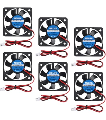 Alimentés en 12V DC, ils garantissent une installation facile dans les petits espaces tout en assurant un refroidissement efficace et silencieux Améliore le flux d'air, adapté au boîtier PC, au refroidisseur CPU, au refroidisseur VGA et à d'autres radiateurs compatibles. Contenu de l'emballage : 1x Ventilateur de refroidissement du boîtier/du CPU Product Name : Lot de 2 ventilateurs DC 12V miniatures 50x50x10mm Brand : Vakler Color : Noir Quantity : 2 pièces Set : 2 ventilateurs + câbles intégrés 2 broches Size : 50 x 50 x 10 mm Material : Plastique PBT durable avec roulement à huile Function : Ventilation silencieuse et refroidissement efficace Purpose : Maintien d’une température stable pour imprimantes 3D, NAS, DVR, PC et autres appareils électroniques Le lot de 2 ventilateurs Vakler 12V DC est conçu pour offrir un refroidissement fiable et silencieux à vos équipements électroniques. COMPATIBILITÉ LARGE ET POLYVALENTE – Solution idéale comme pièce de rechange pour imprimantes 3D, DVR, NAS, routeurs, serveurs et autres systèmes électroniques nécessitant une ventilation fiable. Une solution simple et rapide pour maintenir vos appareils au frais Convient également pour projets DIY ou systèmes de refroidissement personnalisés Grâce à leur faible niveau sonore de seulement 15 dBA et à leur roulement à huile, ils assurent un fonctionnement durable jusqu’à 20 000 heures. Turbine pour imprimante 3D, dc 5V/12V/24v, ventilateur 5010, 50mm DIMENSIONS PRATIQUES ET FORMAT COMPACT – Chaque ventilateur mesure 50 x 50 x 10 mm, conçu en plastique PBT durable et léger. Avec des dimensions compactes de 50 x 50 x 10 mm, ils s’intègrent facilement dans des espaces réduits tout en garantissant une performance de ventilation optimale. Leur connecteur 2 broches standard permet une installation rapide et sans effort. 50mm Silencieux Refroidissement Ventilateur 5V 0.1A 5010 pour Dc sans Brosse PC ... Mini ventilateur 60 x 60 x 10 mm 2 broches DC 24 V avec câbles Petit ventilat Pour Imprimante 3D PC NAS DVR Lot De 2 50x50x10 Mm DC 12V Mini Petit Ventilateurs, 5010 Connecteur 2 Broches Installation Facile Compatibles avec de nombreux appareils comme les imprimantes 3D, DVR, NAS, commutateurs réseau ou PC compacts, ces ventilateurs représentent un remplacement idéal pour vos systèmes de refroidissement bruyants ou défectueux.