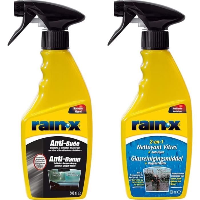 Rain X Anti Buée Pulvérisateur 500 ml Anti Buée Pour Miroir Anti-Buée - 500 Ml & 2-In-1 Nettoyant Vitres + Anti-Pluie 500Ml[J23 Kit Nettoyage Vitres Voiture produit 2: Le spray élimine facilement le givre, la glace, le sel, la boue et les insectes du pare-brise, réduisant ainsi la nécessité d'un nettoyage fréquent produit 1: Se range dans la boîte à gants, le vide poche ou sous le siège produit 1: Produit de qualité Nettoyant pour vitres et anti-pluies Rain-X 2-en-1, 680 ml | Canadian Tire produit 2: Rain-X 2-in-1 Nettoyant vitres et anti-pluie est facile à utiliser, ne laisse pas de traces et améliore la visibilité sur la route par temps humide Anti-pluie Rain-X 500 ml | Visibilité améliorée sous la pluie produit 2: Conçu pour repousser la pluie, il nettoie les vitres et transforme l'eau de pluie en gouttelettes et la fait rouler pour l'évacuer produit 1: Fonctionne également dans la salle de bain