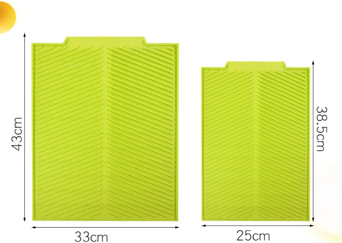 Sécurité Antidérapante : Tapis doté de surfaces absorbantes empêchant la vaisselle de glisser, adhérant fermement au plan de travail pour un séchage stable et sécurisé, protégeant efficacement les surfaces sans déplacement Fabriqué en silicone alimentaire, il est sûr pour une utilisation quotidienne. Tapis génoise silicone 30X8 cm ScrapCooking Plus qu'un simple tapis de séchage pour la vaisselle, ce tapis ultra-absorbant à séchage rapide peut être utilisé comme tapis pour les assiettes et les tasses de votre machine à café, comme tapis de bar ou même comme tapis de séchage pour plan de travail de salle de bain Silicone durable certifié : Conçu en silicone grade alimentaire de haute qualité, ce tapis de séchage allie résilience matérielle et stabilité thermique pour une performance constante dans le temps, garantissant une utilisation durable et sécurisée Tapis de casserole en PVC antidérapant, résistant à l'eau et à la Écoulement amélioré : Le motif en arêtes de poisson optimise la circulation de l'eau pour un drainage rapide, minimisant la présence d'humidité sur votre plan durant le séchage de la vaisselle Répond efficacement aux besoins variés de séchage en cuisine. Accessoire Rangement Plan Travail Tapis De Séchage En Silicone Pour La Cuisine, écologique, Antidérapant, Facile à Nettoyer, Résistant à La Chaleur Tapis Drainage Poisson Silicone Alimentaire En raison de la différence de mesure manuelle, veuillez permettre une différence de taille de 1 à 3 cm. Améliorez votre routine en cuisine avec un tapis de séchage conçu pour un excellent drainage. Sa texture unique en forme d'arête de poisson favorise un écoulement efficace de l'eau tandis que la base antidérapante assure stabilité.