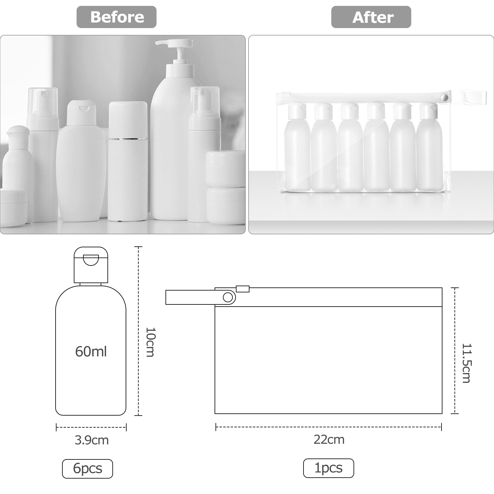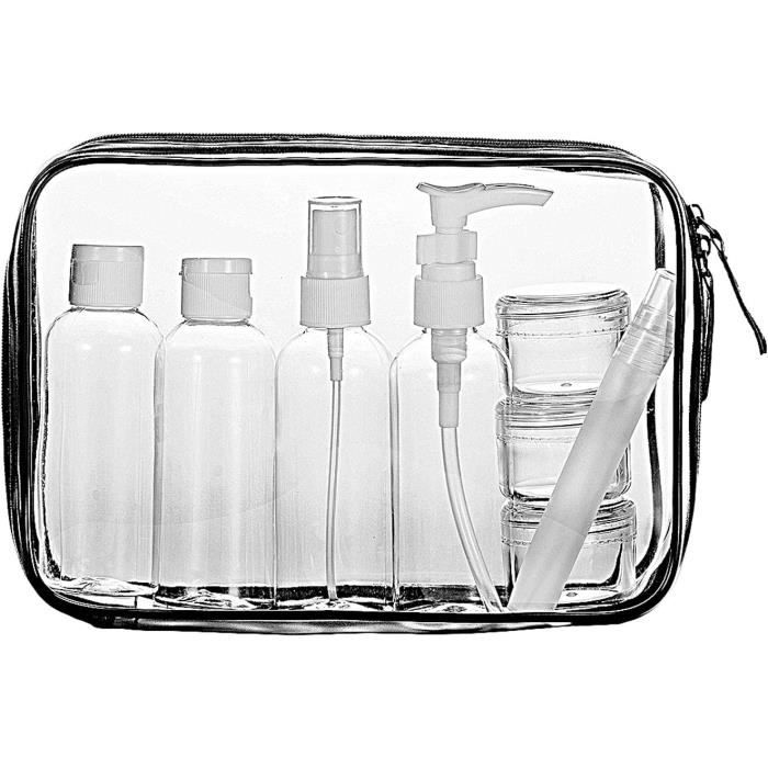 Les accessoires gratuits inclus facilitent le remplissage et la réutilisation des bouteilles en plastique, et les étiquettes vous aident à marquer différents liquides pour une identification rapide et éviter toute confusion., 4., Multifonction : ces bouteilles de voyage vides en plastique peuvent être utilisées pour le shampooing, le gel douche, le nettoyant pour le visage, l'après-shampooing, la lotion, le toner, le savon pour les mains, le lait de lavage du visage, la crème, l'huile de massage, et plus encore, ce qui les rend adaptées pour un usage quotidien., 5., Ces pots cosmétiques en plastique sont non seulement respectueux de l'environnement, mais également parfaits pour répondre à vos différents besoins. 1., Qualité supérieure : fabriquées en plastique PET de haute qualité et en polypropylène avec bouchon à rabat avec design étanche, ces bouteilles de voyage de 50 ml sont légères, robustes et durables pour une utilisation à long terme. Le design transparent de la bouteille aide à identifier le contenu pour une sélection rapide et un réapprovisionnement facile., 2., Design étanche : le design du filetage de la bouteille est assorti au bouchon à rabat pour sceller fermement et éviter les fuites de liquide, ce qui les rend sûres à transporter dans votre sac sans aucun souci., 3., Essentiels de voyage : ces bouteilles sont petites, portables et parfaites pour vos prochaines vacances ou voyages d'affaires. Mini Contenants Toilette Kit Toilette Voyage Lot De 4 Flacons De Voyage 100ml - Plastique Transparent | Bouchon à Vis Étanche | Pour Shampooing, Cosmétiques | Noir Transparent Bouteille Toilette Voyage Kit Voyage Gel Douche Shampooing Découvrez notre charmant Ensemble de Voyage Travel : contenant deux flacons pour lotions de 30 ml, un vaporisateur de 30 ml et deux pots pour crèmes de 10 g, le tout dans un élégant étui de toilette transparent, avec un entonnoir et une mini spatule en prime Les kits de flacons de voyage pour cosmétiques contiennent de petits contenants pour transporter des lotions, des shampooings, des sérums et autres produits de... Lot De 3 Flacons De Voyage | Accessoires | PLT FR