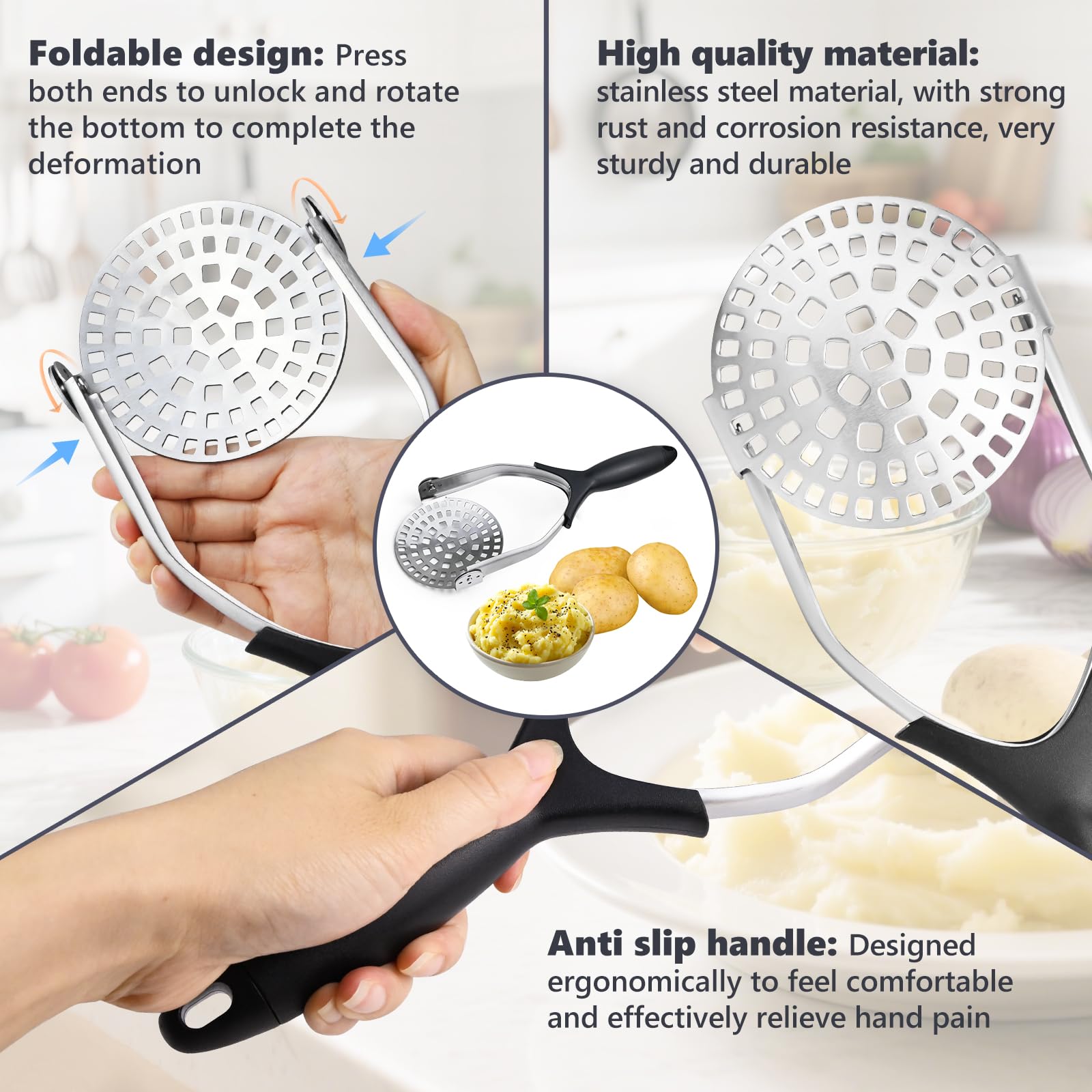 Presse-purée en Acier Inoxydable pour Pommes de Terre Riz Fruits Légumes ... Cuisine Crémeux Lisse pour Pommes de Terre, Fruits, Légumes et Nourriture pour Bébé Un trou de suspension intégré amplifie les possibilités de conservation. Presse Ail Manuel Acier Inoxydable Ecrase Pomme De Terre Et Coupe Presse Puree Matériel de haute qualité: Le presse-patates en acier inoxydable pour pommes de terre et le couteau ondulé sont réalisés en acier inoxydable de haute qualité, dotés d'excellentes propriétés anti-rouille et anti-corrosion. Polyvalence en cuisine: Ces outils sont adaptés non seulement pour les pommes de terre, mais aussi pour les carottes, les courges, les pommes, les bananes et d'autres légumes cuits ou fruits mûrs. Un auxiliaire indispensable pour toute cuisine. Poignée antidérapante: L'écraseur de pommes de terre en acier est équipé d'une poignée ergonomique antidérapante, qui garantit une prise confortable et stable Cozy Inviting Presse Purée en acier Inoxydable, Lavable au Il est entièrement compatible avec le lave-vaisselle. (écraseur de pommes de terre pliable, broyeur de légumes) Il soulage efficacement la douleur aux mains lors de la pression des pommes de terre, permettant de les pureer facilement et rapidement.