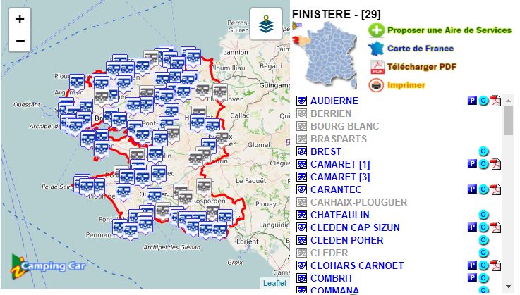 Carte MICHELIN Des Aires Et Parkings Gratuits Di'Italie- Camping-car