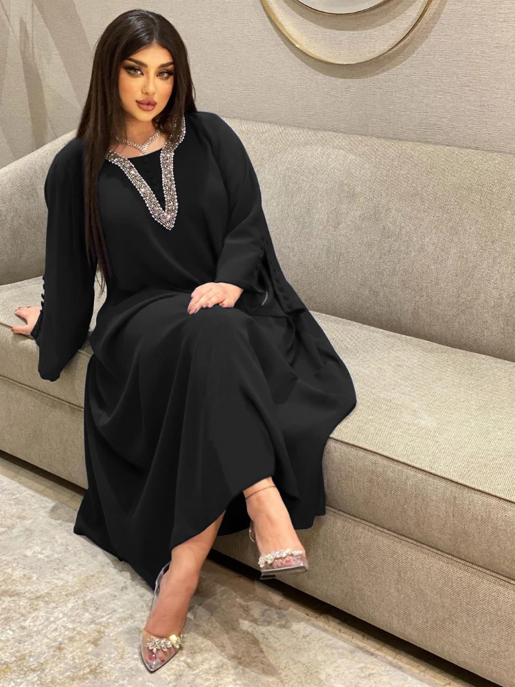 Abayas de Luxe en Mousseline de Soie Noire pour Femme, Boubou, Robe Musulmane, Caftan Marocain, Djellaba, ixde Mariage, Occasions, Dubaï / Mode musulmane Nouvelle conception Weimei Abaya noire en soie pour femmes à Dubaï et en Arabie Saoudite, robe jalabiya, mode, robe maxi en satin pour le soir, vêtements modestes, vêtements islamiques musulmans - Chine Convient pour les femmes musulmanes ou islamiques et pour une variété d'occasions, telles que Excursions de loisirs, mariages, soirées, fêtes religieuses, prières et événements à l'église Matériau : 90 % mousseline de soie, 5 % strass, 5 % perles artificielles. Ce peignoir en mousseline de soie de qualité supérieure avec des accents de strass et de perles artificielles est léger et ajoute une touche d'élégance Parcourez notre sélection de abaya élégante : vous y trouverez les meilleures pièces uniques ou personnalisées de nos boutiques La coupe ouverte est à la fois élégante et pratique et permet de porter et d'enfiler facilement d'autres vêtements Notre abaya robe longue en polyester très élégante est une pièce versatile qui peut être stylée de différentes manières pour diverses occasions. Que ce soit pour un événement formel, une sortie décontractée ou une réunion de famille, l'importance de bien choisir les accessoires, les chaussures et les hijabs ne peut être sous-estimée La capuche ajoute une touche de secret et peut être utile pour se protéger du soleil ou comme déclaration de mode Étiquette n° - Taille recommandée - Longueur - Tour des épaules.