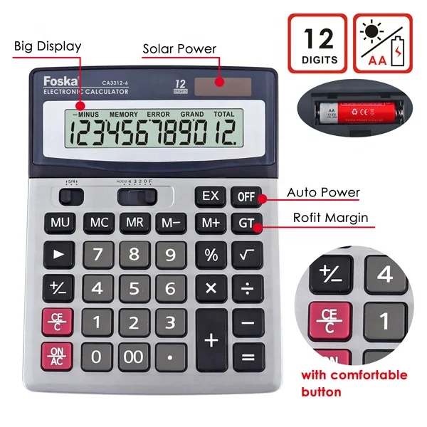Grand écran à 12 chiffres : la calculatrice de bureau de base avec un grand écran à 12 chiffres et un angle de 15 degrés. Le grand écran LCD qui affiche clairement de grands chiffres facilite la lecture de loin, la lecture des calculs est sans effort Dimensions : 15 x 12 x 4 cm. Calculatrice De Bureau Solaire Fockety Calculatrice Solaire En Bois De Bambou à 12 Chiffres, Calculatrice De Bureau à Fonction Standard De Base Avec Double Alimentation Solaire Et Batterie, Pour Le Bureau Et Caractéristiques : Couleur : bleu/rose/noir (facultatif)., Matériau : plastique. Avec coussinet antidérapant sur le dessous, plus stable à utiliser. Design à double alimentation, solaire et batterie (batterie non incluse). Double alimentation, solaire avec batterie de secours, fonctionne dans des conditions de faible luminosité. Convient pour les affaires, le bureau, la maison, le budget de base, l'école, etc Calculatrice Scientifique Blanche, écran LCD 12 Chiffres Double Alimentation Batterie Et Solaire Bureau Maison Ecole 96377877 Alimentation : solaire et 1 pile AA (non incluse). Poids de l'article : 109 g., Contenu : 1 calculatrice Affichage : grand écran LCD à 12 chiffres.