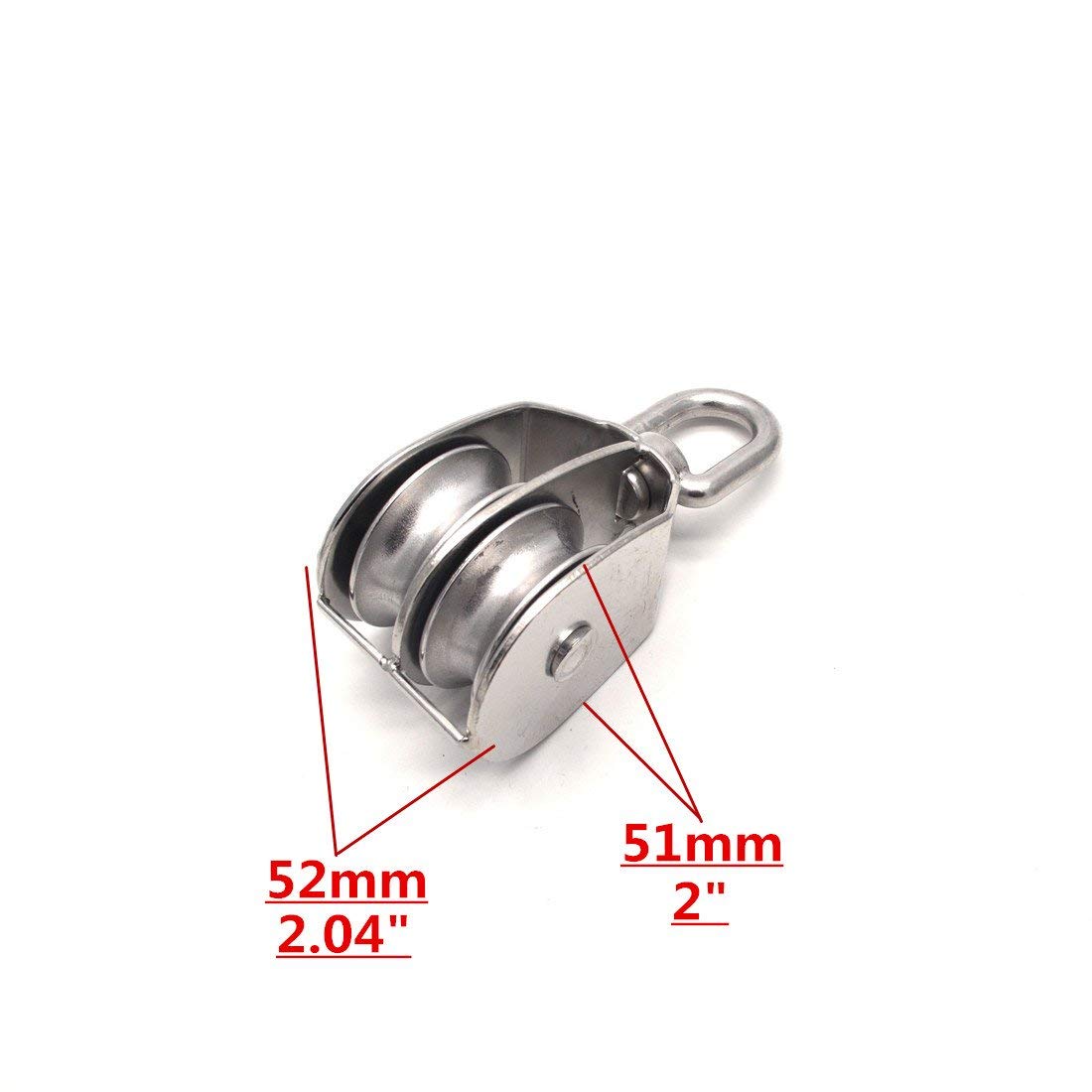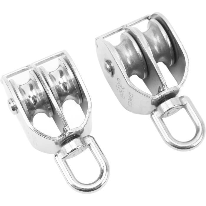Poulie De Mouflage 2 Pièces Bloc De Poulie, M25 Poulie En Acier Inoxydable Avec Crochet Pivotant Pour Ligne De Lavage De Câble Métallique, Chargement Sûr Jusqu'à 150KG Poulie Acier Inoxydable 【Large gamme d'applications】 Les poulies pivotantes sont réalisables avec une corde ou un cordon intérieur et extérieur pour une poulie coulissante flexible. M50 - Dimensions : environ 13 x 5 cm. ... Cet élément est fabriqué en acier inoxydable 304 pour une utilisation robuste et durable. Il est inoxydable et résistant... Lot de 2 poulies de levage M50 doubles en acier inoxydable avec crochet pivotant à 360° Charge maximale 400 kg Spécifications: Matériau: 304 Arec inoxydable Roue en acier inoxydable: 2 '' / 50 mm x 0,6 '' / 15 mm (d x w) Diamètre des yeux. Installation facile pour les grands kayaks, canoës, usines, construction, expédition, exploitation minière, ménage. Poulie double de levage SURENHAP - M50 - Capacité de charge 400kg 【Bague pivotante à 360 degrés】 M50 Bloc à poulies unique avec roue à virage lisse, rotation à 360 degrés pour empêcher la corde / câble / fil de nouement pour votre utilisation pratique. La finition lisse et poli réduit la friction et l'usure, étendant sa longévité. Emballage inclus: 1pc Bloc de poulie pivotant pivotant à roue M50., 4., Application à l'échelle: Convient pour les équipements de fitness DIY, les accessoires de remise en forme, les rideaux, les lignes de lavage, les garages, les paniers suspendus, le système de poulie de chien, etc. Fixez la charge au crochet pivotant, en garantissant qu'il est correctement équilibré. Ce bloc de poulies convient pour une utilisation dans les environnements de construction, marins, industriels et domestiques., 5., Instruction: Pour utiliser le bloc de poulie en acier inoxydable 304, fixez-le à un point de support stable. 【Matériau premium】 Rouleau à poulie unique composé de 304 en acier inoxydable, avec une grande robuste, anti-rust, une résistance à l'usure et résistante à la corrosion avec une structure très forte. 20 mm /0,79 Hauteur: 130 mm / 5,12 Capacité de poids: 882 lbs (400 kg) Package: 1 x M50 Bloc de poulie Il peut être facilement transporté dans une boîte à outils ou un sac à dos.