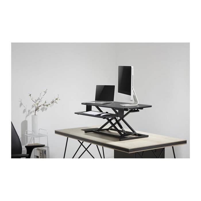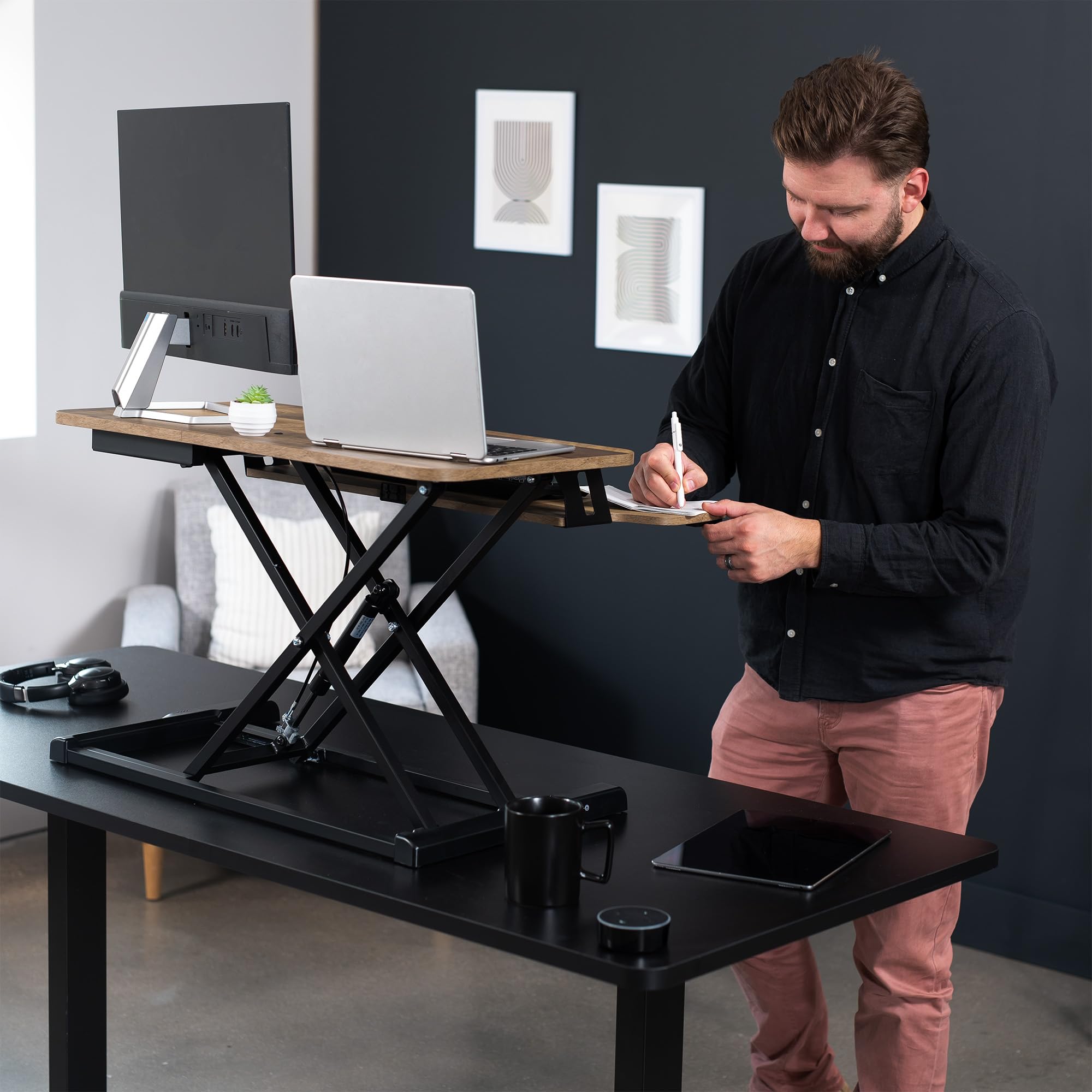 assis debout xxl sans repose pieds VIVO DESK-V036KN Convertisseur de bureau 91,4 cm, série K, rehausseur assis- debout, hauteur réglable, double écran, ordinateur portable, grand support clavier, dessus marron rétro rustique, cadre noir Le bureau ajustable en hauteur est un incontournable de l' aménagement de poste. Il permet d'adapter la hauteur du poste de travail à la taille de l'utilisateur et d'alterner entre travail assis et travail debout pour lutter contre les effets de la sédentarité au travail Bureau assis-debout : 15 modèles pour vous protéger des méfaits de la...