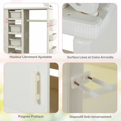 Armoire Chambre Enfant COSTWAY Armoire à Vêtements Enfant En HDPE Avec Tige De Suspension & 5 Dressing Enfant De plus, il est équipé d'un dispositif anti-basculement pour éviter qu'il ne tombe et ne blesse vos enfants. COSTWAY Armoire à Bijoux à Roulettes avec Miroir de Pleine Longueur... EN STOCK : COSTWAY Portant à Vêtements Enfant en Forme d'ours avec 3 Hauteurs Réglables, Garde-Robe Enfant en Métal avec Panier Inférieur, Porte-vêtements sur roulettes pour Chambre d'enfant, Charge 50kg, VH33946IT-EU pas cher. Livraison rapide partout en France Ne laissez pas les enfants grimper sur l'armoire. 【Assemblage & Nettoyage Faciles】De par sa structure simple, il vous sera facile d'assembler ce portant vetement enfant sous la direction du manuel. COSTWAY Meuble de Rangement Jouet Enfant en Forme Bus avec 4 Tiroirs & 3 Placards, Étagère de Rangement Jouet en HDPE avec Tableau Blanc, Bibliothèque Enfant de 3 Ans+ pour Salle de Le fond solide assure une stabilité générale. Description du produit Description: Vous recherchez un espace de rangement pour vos enfants pour qu'ils puissent ranger manteaux, robes et jouets ? Ce placard facile à assembler répondra à vos besoins. Fabriqué en HDPE de qualité supérieure, l'organisateur de rangement est stable et possède une bonne capacité de poids. Spécifications : Couleur: Rose / Gris/Blanc Matériau: HDPE Dimension Totale: 123 x 34 x 156 cm (L x l x H) Poids Net: 17,5 kg Capacité de Charge de Chaque Cube: 25 kg Capacité de Charge du Bac: 10 kg Âge Approprié: Plus de 3 ans Livraisons : 1 x Armoire pour Enfants 1 x Guide de l'utilisateur Avertissement De Sûreté Attention: Assurez-vous que l'armoire est correctement fixée au mur avec le dispositif anti-basculement fourni pour éviter tout risque de basculement. Caractéristiques : Fabriqué en HDPE de qualité supérieure, sûr pour vos enfants 3 cubes avec portes pour ranger des articles de grande taille et les protéger de la poussière 5 étagères ouverts créant un espace plus large pour ranger les chaussures et les jouets Équipé de boîtes de rangement pour garder les jouets ou d'autres articles ensemble Tablettes et paniers latéraux ajustables pour répondre à différents besoins d'utilisation 3 rainures sur le dessus pour offrir un espace de rangement supplémentaire Dispositif anti-basculement offrant une sécurité supplémentaire pour vos enfants Base plate avec une grande surface de contact pour une haute stabilité Convient pour la charme à la chambre d'enfants, crèche, maternelle, etc. 【Construction Sécurisée】Ce placard de rangement enfants est fabriqué en HDPE de qualité supérieure, non toxique et sans odeur. 【Apparence Adorable】Avec une apparence en forme de maison, cette armoire de rangement apporte une touche de chaleur et de charme à la chambre de votre enfant. Il dispose d'une tringle solide pour suspendre les vêtements et de 5 étagères ouverts avec des boîtes, 3 cubes fermés ainsi que 3 paniers latéraux pour ranger jouets, livres, chaussures, etc.