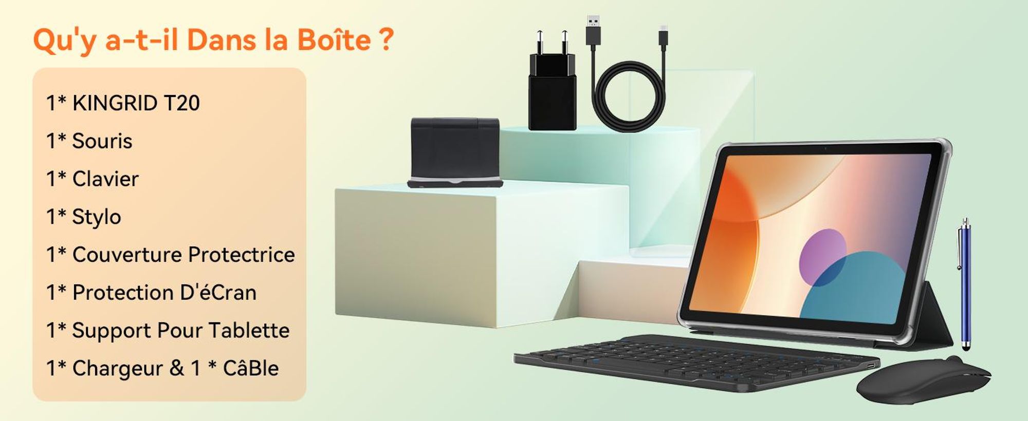 La caméra Smart Scan intégrée reconnaît et améliore immédiatement les documents, les reçus ou les tableaux blancs et transforme votre tablettes en un scanner mobile pratique. 1 Écran divisé 2 5G WiFi & Bluetooth 5., 0 3 GPS En association avec les haut-parleurs Smart-K Dual BOX, vous pourrez profiter d'une basse profonde et d'un son stéréo immersif. Pas plus d'accidents. La mémoire interne de 256 Go offre suffisamment d'espace pour les applications, les photos et les vidéos, tandis que l'emplacement microSD permet une extension allant jusqu'à 2 To pour assurer que vous ne manquez jamais de mémoire. KINGRID 2025 Dernier 10 Pouces Tablette Android 15, 24Go RAM 【Avec le temps】- T606 Octa-Core pour des performances réelles Avez-vous déjà été retenu avec une tablette lente et gelée, juste lorsque vous en avez le plus besoin? Le KINGRID T20 change cela. Alimenté par le processeur octa-noyau UNISOC T606, il traite tout ce que vous y jetez - courriels de travail, cours en ligne, appels, séances intensives de jeu - alles ohne Schweiß zu brechen., Pas plus de retard. Tablette D'écriture LCD 24 Pouces, Bloc de Dessin avec écran Haute luminosité, Tableau de Gribouillage, Bloc D'écriture pour Enfants Apprenant à la Maison... Tablette Kingrid T20 Prix KINGRID Tablet T90 Android 15 10 Inch Tablet, Android 15 Tablets, 24GB RAM + 256GB ROM (Expandable To 2TB), Gemini Ai, Widevine L1, WiFi 6, BT 5.0, GPS, Gaming, With Keyboard, Case Tablette Kingrid 10 Pouces 24go Ram 【Wi-Fi rapide 5G & caméra de numérisation intelligente】- Restez en ligne avec une connexion Wi-Fi à double bande 5G rapide, parfaite pour les appels à zoom sans heurt, les téléchargements rapides et le streaming sans tampon. 【Dernière tablette Gemini AI + Android 15】 - Plus intelligente, plus rapide, intuitive La tablette LINGRID T20 fonctionne sur la dernière tablette Android 15, qui fonctionne avec Gemini AI pour une expérience utilisateur plus efficace. Cet article : KINGRID Tablette Android 15 de 10", 24 Go 256 Go/2 To, 1280 x 800 pixels, WiFi 6, BT 5.0, Gemini Ai, Smart Tab avec clavier, souris, étui et stylo, meilleur onglet pour regarder la télévision 【Massive 24 Go RAM + 256 Go de mémoire (extensible sur 2 To)】- Avec 8 Go de RAM de base, extensible sur jusqu'à 24 Go via technologie avancée d'extension de mémoire, offre cette tablette des performances rapides pour le jeu, le streaming et le multitâche. Que vous travailliez à domicile, étudiez ou accomplissez des tâches quotidiennes, grande tablette tactile c’est l’outil idéal pour maintenir la vie organisée et productive. 1 Tablette Android 15 2 24Go RAM +256Go ROM 3 Unisoc T606 4 5000mAh Que vous travailliez à distance, prenez des notes ou regardez des films, le T20 s'adapte à vos besoins.