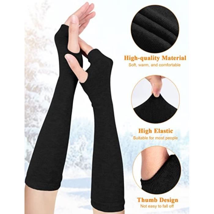 Matériau : Les demi-gants sans doigts sont composés à 80 % de polyester et à 20 % de cachemire, doux, élastiques, confortables et légers, faciles à mettre et à enlever. Profitez de nos gants sans doigts en cachemire, conçus pour vous garder au chaud tout en permettant une liberté de mouvement totale. Ces gants thermiques avec trou pour le pouce sont parfaits pour les activités extérieures, le sport ou un usage quotidien en hiver C'est un excellent accessoire pour garder vos mains au chaud par temps frais et froid. Les gants demi-doigts sont conçus avec des gants d'hiver sans doigts et sans doigts permettant un mouvement libre et facile des doigts, très pratiques à utiliser. Ce qui en fait le meilleur choix pour une paire de gants fiable et confortable. Manchette Bras Femme EUPSIIU 2 Paires Gants Sans Doigts, Chauffe-poignets En Cachemire Gants Thermiques Avec Trou Pour Le Pouce, Mitaines Gants Femme Hiver, Chaud Poignet Main Bras Mitaines Tricotés (Fauve, Gris Gant Taille : Les gants chauffe-poignets mesurent 19 cm/ 7,5 pouces, les gants pour le pouce sont suffisamment longs pour protéger votre poignet et peuvent être recouverts par des manches. Les manchettes sans doigts avec trou pour le pouce permettent un mouvement libre et facile des doigts. Fonction : Les gants sans doigts en cachemire peuvent garder vos mains au chaud tout en gardant votre poignet au chaud. Ces gants tricotés sans doigts avec une bonne élasticité, sont extensibles et conviennent à la plupart des gens, vous offrent de bonnes expériences de port. EUPSIIU 2 Paires Femme De Gants Sans Doigts Tricotés, Mitaines Demi Doigts, Extensible Tricotés Gants Chauds d'Hiver, Chaudes Poignet Bras Mitaines Tricotées (Noir, Kaki, Taille unique Conception : Les gants d'hiver pour femmes ont un motif pur, classiques et faciles à assortir. La conception sans doigts permet aux doigts de bouger de manière flexible lorsque vous travaillez, répondez à des appels, faites de l'exercice ou tapez. Ils sont faciles à mettre et à enlever et offrent une bonne expérience de port