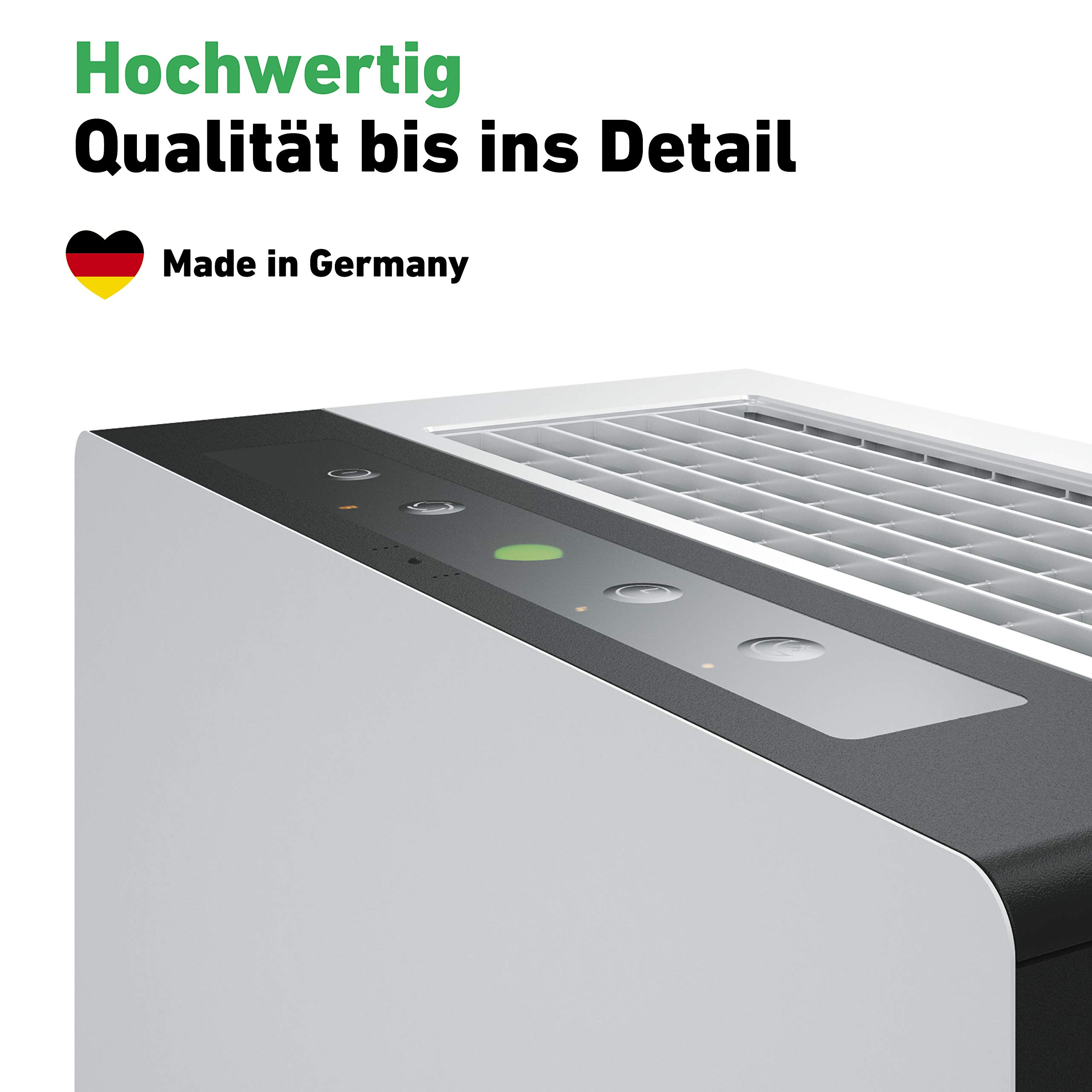Purificateur 70 M² Silencieux IDEAL - Luftreiniger AP60 PRO Bis 70m² | Made In Germany | HEPA Filter Und Aktivkohlefilter, CADR 562m³/h, 99,99% Filterleistung (Allergene, Gerüche, Zigarettenrauch, Staub) | Für Büro, Schlafzimmer Purificateur D'air IDEAL Le flux d'air optimisé et le ventilateur très efficace atteignent un débit d'air élevé même au niveau de filtration le plus bas. Réglages et informations supplémentaires via l'application IDEAL Air Pro. Ce concentré de puissance avec un véritable turbo assure une performance de nettoyage supérieure. Finition avec des composants et des matériaux de qualité provenant de fabricants renommés, pour la plupart allemands. Contenu de la livraison : 1 x IDEAL AP60 PRO, 1 x filtre multicouches 360°. Pour une longue durée de vie Made in Germany. Fonction minuterie, sécurité enfants, contrôle de l'état du filtre, 100% sans ozone, adapté aux personnes allergiques (certifié ECARF) et approuvé pour une utilisation dans les établissements médicaux. Puissance maximale Le purificateur d'air IDEAL AP60 PRO est une véritable concentré de puissance et convainc par son mode turbo. Ideal Purificateur d'air haute performance AP80Pro, filtre intelligent HEPA 360 Cela garantit un débit d'air maximal et une performance de nettoyage optimale. The AP60 Pro is a professional air purifier with the new high-performance 360° multi-layer filter. It reliably filters pollutants and contaminants such as fine dust (PM10, PM2.5, PM0.3, PM0.1 at least 99.97%), pollen and other airborne allergens, pathogens such as bacteria and mold spores (and inhibits their growth in the filter), cigarette smoke, exhaust fumes, chemical vapors (formaldehyde... Optimisé pour une circulation d'air sur 50-70 m². Très silencieux Nos purificateurs d'air offrent les meilleures performances avec un fonctionnement silencieux supérieur à la moyenne. Une faible consommation d'énergie (à partir de 6 watts) caractérise ce purificateur d'air haute performance. Purificateur d'air ultra-efficace et silencieux dans un boîtier métallique robuste de haute qualité - pour un débit d'air maximal (CADR 562 m³/h). Vous n'avez qu'à choisir une seule fois. Grâce à sa puissance élevée, convient également très bien pour les grandes pièces. Petits prix et livraison gratuite dès 25 euros d'achat sur les produits IDEAL. Commandez IDEAL - Purificateur d'air AP60 PRO (70m²) | Made in Germany | Filtre HEPA & filtre à charbon actif qui élimine 99,99% des allergènes, odeurs, poussières... | Pour bureau, chambre à coucher Depuis plus de 65 ans et dans le futur. Malgré sa grande puissance, le purificateur d'air ambiant est agréablement silencieux.