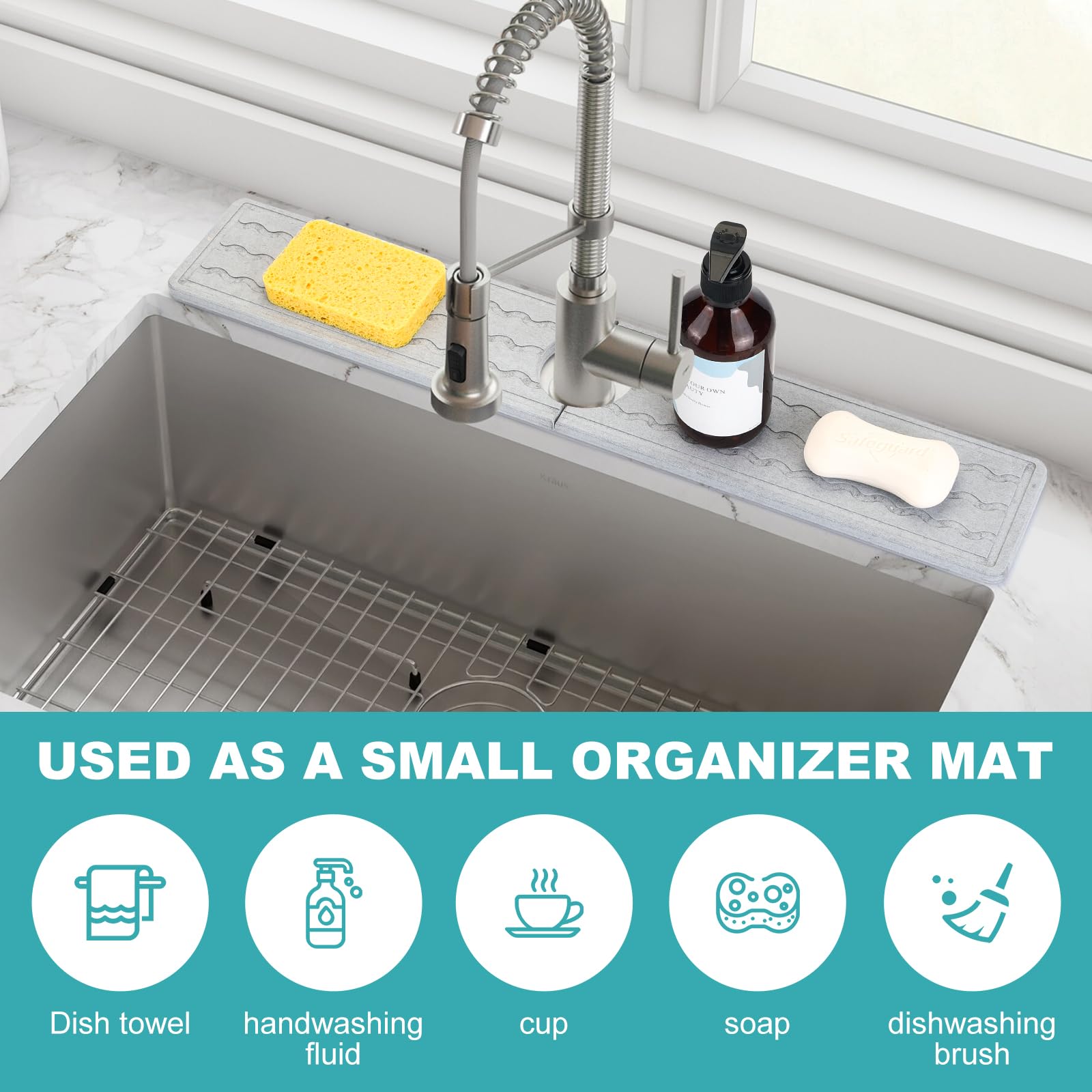 Gardez une surface de travail bien rangée avec cette protection pour robinet et tapis d'égouttement. Vous pouvez installer ce tapis d'évier en silicone presque partout où vous avez un robinet : cuisine, évier de salle de bain, buanderie, camping-car, maison de campagne, etc. Il est idéal pour garder vos plans de travail et votre joint d'étanchéité secs et propres Fabriqué en pierre de haute qualité, ce tapis absorbe rapidement les éclaboussures et empêche l'accumulation d'humidité. Impressionnez vos invités et gardez votre lavabo propre avec cette solution élégante et efficace. Utilisez-le comme protection contre les éclaboussures pour garder vos surfaces de travail propres et sèches partout. Idéal pour une utilisation quotidienne dans la cuisine ou la salle de bain pour éviter les taches d'eau. Nombreuses utilisations : ce protège-évier de cuisine est adapté non seulement pour la cuisine, mais aussi pour la salle de bain, les camping-cars et les bars. Attrape-goutte antidérapant : le collecteur d'égouttement de poignée de robinet a un design simple, mais très pratique à utiliser, vous donnant un Tapis pour évier de cuisine Le temps de séchage rapide garantit que vos surfaces de travail restent toujours sèches et bien rangées. Mikinona Tapis anti-éclaboussures antidérapant pour évier de Tour De Robinet Cuisine Beekfect Protection Anti-éclaboussures Pour évier De Cuisine En Pierre De 60 Cm, Tapis De Robinet En Terre De Diatomée à Séchage Instantané Pour évier Tapis Robinet Evier Cuisine Séchage rapide et durable : notre tapis de robinet en silicone sèche en quelques minutes et reste durable pendant une longue période. Que ce soit dans la cuisine, la salle de bain ou même dans les camping-cars, cette protection de robinet polyvalente et tapis d'égouttement est un accessoire indispensable pour toute maison moderne. Gardez un environnement toujours propre et sec avec cette solution élégante et efficace. Matériau super absorbant : ce tapis de protection pour robinet est fabriqué en pierre hautement absorbante, qui absorbe rapidement les éclaboussures et empêche l'accumulation d'humidité. Parfait pour une cuisine ou une salle de bain propre et sèche.