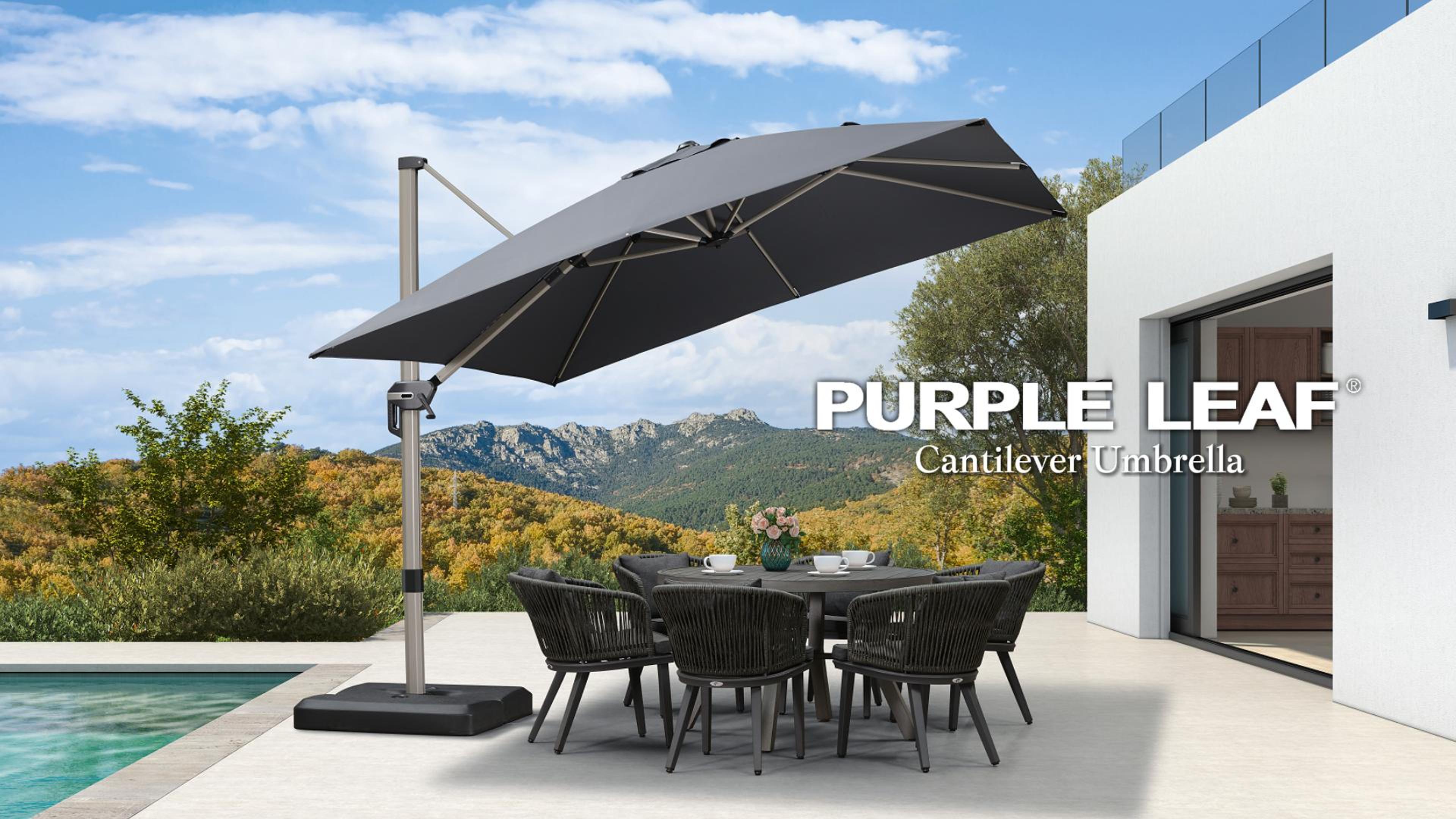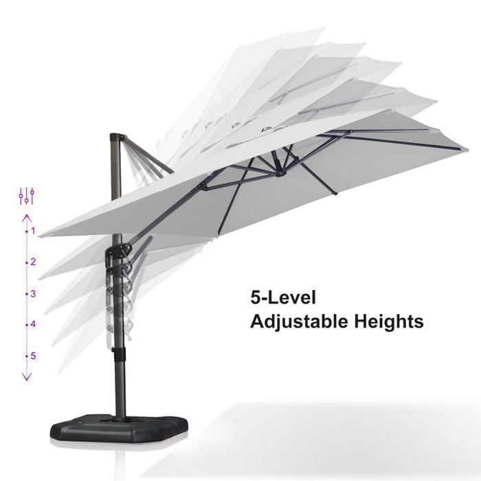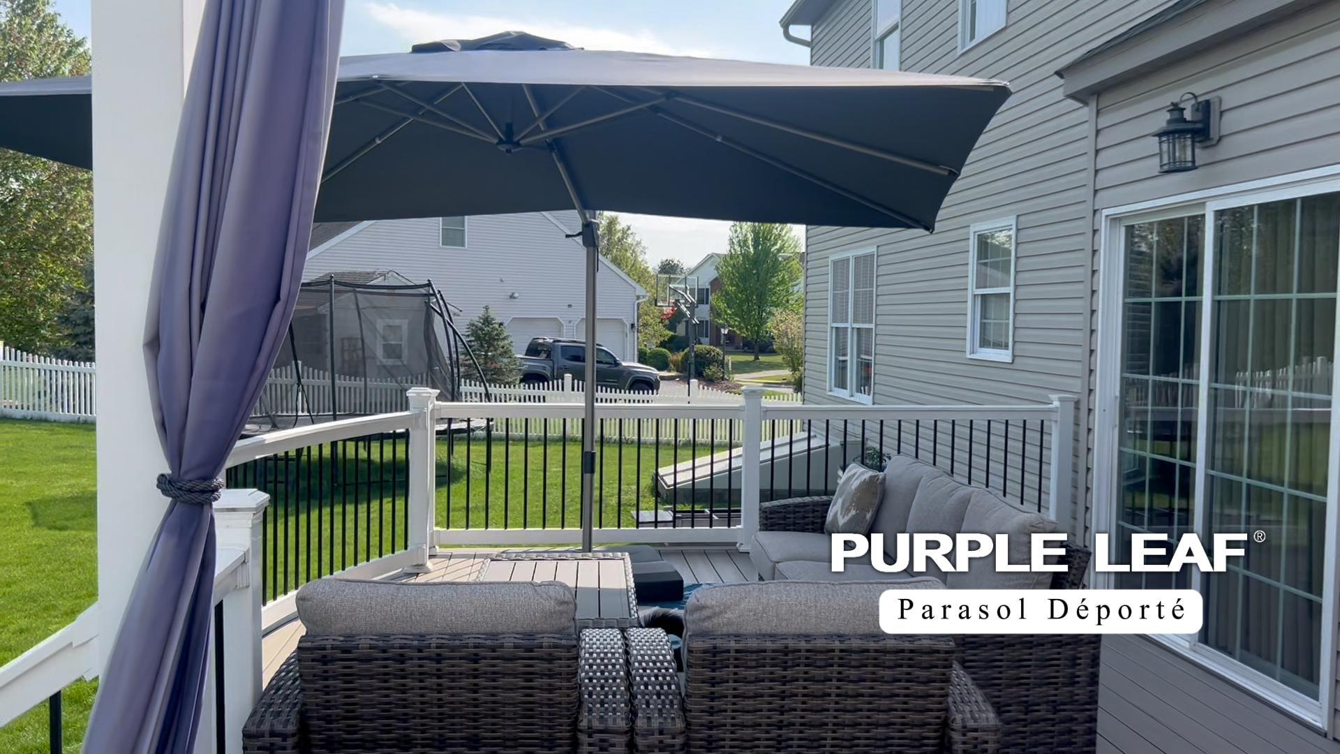 Parasol Déporté PURPLE LEAF 2,5 × 2,5 m Carré avec Aluminium Parasol Déporté Jardin PURPLE LEAF Parasol Déporté Rectangulaire 2,7 X 3,5 M Avec Pied En Croix, Parasol De Jardin Extérieur En Aluminium Toile Haute Densité 240 G/m² Avec Protection UV, Inclinable Et Rotatif à 360 Parasol Chauffant Le parasol peut non seulement rotation à 360° de manière flexible, mais également ajuster la hauteur et l'inclinaison pour offrir une meilleure protection solaire PURPLR LEAF parasol de terrasse, structure en aluminium, très solide et durable, également recouvert d'un revêtement antioxydant pour éviter la rouille et la corrosion. Vous recevrez à la livraison un parasol, un base croisée et une housse de parasol Protection UV UPF50 Parasol Déporté 2.5x2.5m Carré - Rotatif 360°, Toit UPF 50 , Mât Aluminium Champagne - Pour Terrasse, Piscine Purple Leaf Fabriqué en tissu polyester teint en fil de 240 g, UPF50+, peut protéger contre 98 % des rayons UV nocifs, le tissu ne se décolore pas dans les 3 ans et peut rester brillant pendant de nombreuses années Les parasols d'extérieur PURPLE LEAF sont disponibles en deux modèles : les parasols déportés à double toit de grande taille et les parasols déportés à toit simple Fabriqué entièrement en aluminium, ce parasol de jardin possède 8 baleines solides, ce qui le rend extrêmement durable et résistant à la rouille Le parasol a une apparence simple et élégante et s'adapte parfaitement à toutes sortes de meubles.