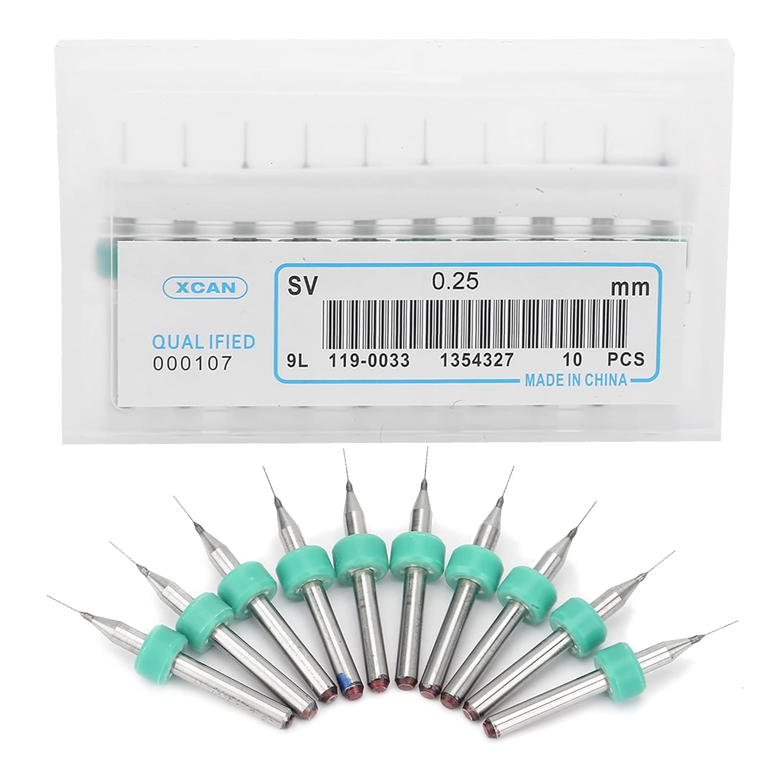 10 Box (100pcs) -XCAN – jeu de Mini forets pour PCB,en carbure de 10 à Mini Cnc 10pcs Haute Dureté Mini Carbure Forets Ensemble Pour La Gravure CNC Circuit Imprimé (0,25 Mm Lot 10 Pièces Précision Gamme de traitement : circuits imprimés, SMT, CNC, moules, gravure, plastique, cuivre, acier inoxydable et autres traitements matériels. Spécifications :Condition : neufType d'article : ForetMatériau : CarbureQuantité : 10 piècesTaille : 0,25 mm, 0,35 mm, 0,55 mm, 0,65 mm (en option)Plage de traitement : circuits imprimés, SMT, CNC, moules, gravure, plastique, cuivre, acier inoxydable et autres traitements matériels. Veuillez prendre le vrai en standard., 3., Veuillez noter que la couleur du foret de ce produit sera envoyée au hasard, veuillez vous assurer que cela ne vous dérange pas avant de commander. 10 pièces/ensemble 0.2mm à 3.175mm PCB Mini foret carbure d'acier au tungstène pour carte de Circuit imprimé CNC forets Grand espace pour l'élimination des copeaux – Petite résistance à l'élimination des copeaux, élimination des copeaux, faible génération de chaleur. Bord de coupe strictement symétrique : il est bénéfique pour une coupe efficace et éviter le décalage de perçage. Gamme de traitement : circuit imprimé, SMT, CNC, moule, gravure, plastique, cuivre, acier inoxydable et autres traitements matériels Bord de coupe strictement symétrique : il est bénéfique pour une coupe efficace et évite le décalage de perçage. Merci de votre compréhension., 2., Les moniteurs ne sont pas calibrés de la même manière, la couleur de l'élément affichée sur les photos peut être légèrement différente de l'objet réel.