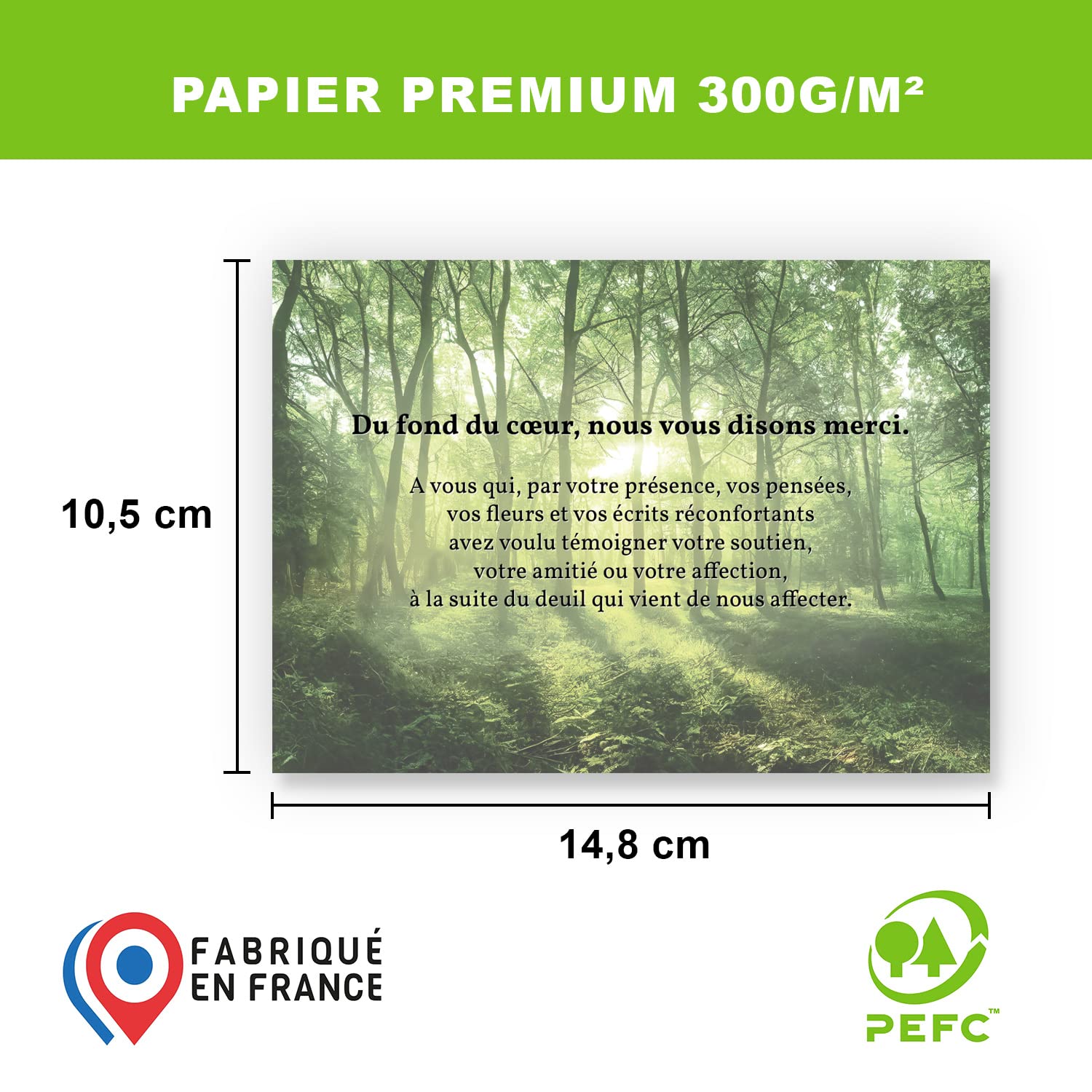 Impression haute qualité sur papier couché 350 g/m² : Chaque carte est imprimée recto uniquement sur un papier couché premium de 350 grammes, offrant une surface lisse et un rendu professionnel pour une présentation soignée. Format pratique A6 (10,5 x 14,8 cm) : Un format compact idéal pour une manipulation facile et un envoi postal standard, tout en conservant une lisibilité optimale. Inclus avec enveloppes blanches : Chaque lot est accompagné d’enveloppes blanches de qualité, prêtes à l’envoi pour simplifier vos démarches de remerciement. Chasseur - Carte remerciement décès chasse Disponible en plusieurs lots : Choisissez parmi des lots de 5, 10, 30, 50 ou 70 cartes selon vos besoins, pour répondre de manière flexible à toutes les situations. Carte remerciement décès orchidées blanches et fine croix 670.137 Cartes Condoléances Italien Format A6 350g Lot 30 Carte Remerciement Obsèques A6 10 Cartes Remerciement Deuil - Condoléances Format A6 - Avec Enveloppes - Design Sobre Carte Remerciements Deces Papier Carte Deuil A6 Que vous souhaitiez remercier après condoléances ou faire-part d'un décès, vous trouverez chez Remerciements de Deuil de nombreux modèles. Vous pourrez personnaliser rapidement la carte de remerciement de deuil de votre choix