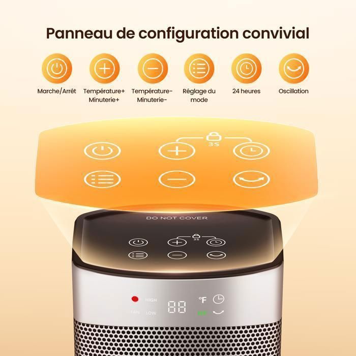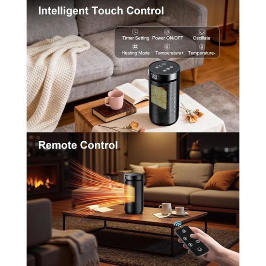 5 couches de protection, tranquillité d'esprit Adapté aux animaux et aux enfants & Prise de sécurité améliorée Protection contre la surchauffe & Certification CE Matériau ignifuge de qualité V-0 Il ne faut que 2 secondes pour ressentir immédiatement la chaleur,L'efficacité du chauffage est augmentée de 45 %, le panneau crypté est élargi et la répartition de la chaleur est plus uniforme Trois réglages de mode de température (ventilateur/faible chaleur/gao) Il est également équipé d’un système de protection contre la surchauffe, qui coupe automatiquement l’alimentation électrique lorsque la température dépasse le seuil de sécurité. Un simple toucher suffit pour des réglages précis. Son efficacité thermique est 45 % supérieure à celle des chauffages traditionnels, économisant énergie et électricité de manière plus performante. Double Protection pour une Utilisation Sûre Protection Anti-Chute à 45° Intégrée : le Chauffage d'Appoint s'éteint automatiquement immédiatement s'il est renversé accidentellement, évitant efficacement les risques potentiels liés à la surchauffe Chauffage d'appoint électrique, chauffage électrique de 1500 W avec thermostat et télécommande, chauffage d'appoint économe en énergie pour une utilisation en intérieur avec flamme 3D réaliste et 😄 Double Protection Pour une Utilisation Sûre : Protection Anti-Chute Intégrée à 45° : si le chauffage tombe accidentellement, il s’éteint automatiquement immédiatement, évitant efficacement les risques potentiels liés à la surchauffe. 🎁 Léger et Portable, Le Choix Idéal de Cadeau Chaleureux Pour l'hiver : Conçu avec une silhouette légère et compacte (seulement 1,2 kg), il peut être porté d'une main et s'adapte parfaitement à diverses scènes telles que la chambre, le salon, la salle de bain, etc. Même en le faisant fonctionner dans la chambre pendant le sommeil ou dans le bureau pendant le travail, il ne dérange pas. 👀 Contrôle Intelligent Tactile + Télécommande à Distance : Équipé d’un écran LED clair et de touches tactiles sensibles, 5 Fonctions Essentielles (Allumage/Éteignage, Oscillation, Réglage de température haut/bas, Temporisation) sont affichées de manière intuitive, et l’état d’utilisation de l’appareil est visible d’un coup d’œil. Chauffage Sécurité Anti-chute Chauffage D'appoint, 1500W PTC, 3 Modes Chauffants, Protection Anti Chauffage Avec Télécommande Et Minuterie CHAUFFAGE PORTABLE : Ce radiateur en céramique de 1 500 watts chauffe efficacement les petites et moyennes pièces, comme un bureau ou une chambre. THERMOSTAT RÉGLABLE : L’affichage numérique et la télécommande facilitent le réglage et le maintien de la température souhaitée Son panneau de chauffage large et dense assure une distribution uniforme de la chaleur, diffusant une chaleur confortable dans toute la pièce sans zones froides. Commande double mode : écran tactile LED + télécommande à distance sans souci et sans effort Équipé de 4 modes de réglage (Ventilateur / Chaleur faible / Chaleur élevée / ECO), il correspond précisément à vos besoins en matière de chauffage. Description du produit Six raisons de choisir AUKUZI Chauffage d'Appoint 🔥 1500W Puissance Élevée + Réglage de Puissance en 4 Niveaux : Chauffage d’appoint 1500W, chauffage instantané en 2 secondes : chaleur immédiate sans longue attente ! Il dispose également d’une fonction d’oscillation à grande portée de 90°, diffusant uniformément l’air (ou la chaleur) dans chaque espace et éliminant les zones chaudes et froides inégales.