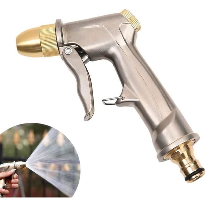 Pistolet d'arrosage métal Pistolet Arrosoir,Lance Haute Pression Generic D'arrosage Métal Pistolet Arrosoir, Bouton De Contrôle De Débit Facile, Pulvérisateur De Jardin à Haute Pression Professionnel, Puissant Pour Lavage De Voiture, Arrosage De Jardin - Prix pas cher ★【Multi-usage】 Pulvérisateur à haute pression avec plusieurs modes de pulvérisation pour laver votre voiture, arroser les plantes et les fleurs de votre jardin et de votre pelouse, nettoyer l'allée/le sol/le balcon/le verre et partout où vous ne pouvez pas vous approcher, vous pouvez également utiliser pour nettoyer votre animal de compagnie, répondre à vos différents besoins d'abreuvement et de nettoyage. Le pistolet de pulvérisation pour tuyau d'arrosage fournit un débit d'eau à haute pression pour les activités de plein air. Spécification : ☀-Matériau : alliage de zinc, cuivre, acier inoxydable ☀-Distance de pulvérisation : environ 10-20 m (selon la pression de l'eau) ☀-Taille: env. Pistolet d'arrosage à Haute Pression pour Eau de Jardin avec buse en Laiton, Parfait pour Laver/arroser Les pelouses et Les Jardin ; Livraison gratuite. i ; i ★【Pistolet de pulvérisation pour tuyau de jardin】 Pistolet de pulvérisation haute pression avec buse en laiton, utilisé pour le lavage de voiture, l'irrigation de la pelouse, le jardin et les travaux de nettoyage. Le pistolet de pulvérisation pour tuyau d'arrosage fournit un débit d'eau à haute pression pour toutes les activités de plein air, idéal pour le lavage de voiture, l'arrosage du jardin et le nettoyage de la maison, ou le bain du chien par une chaude journée d'été ★【Matériaux de haute qualité】 La buse en laiton entièrement rectifiée et le corps du pistolet en alliage de zinc le rendent beaucoup plus résistant que la tête de pistolet en plastique. C'est génial de nettoyer votre voiture, trottoirs, terrasses, gouttières, terrasses et autres plantes, ou de baigner votre chien par une chaude journée d'été.