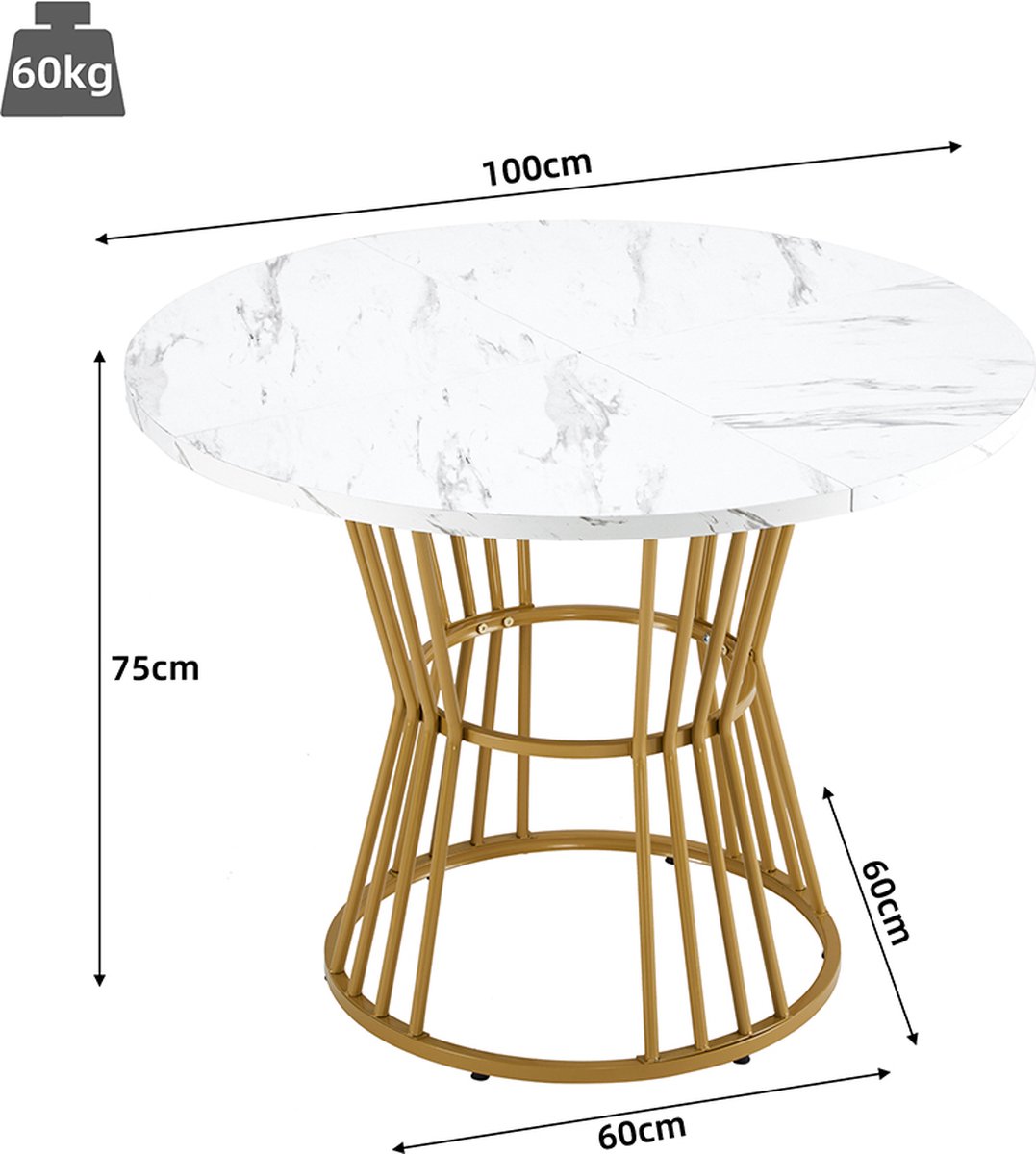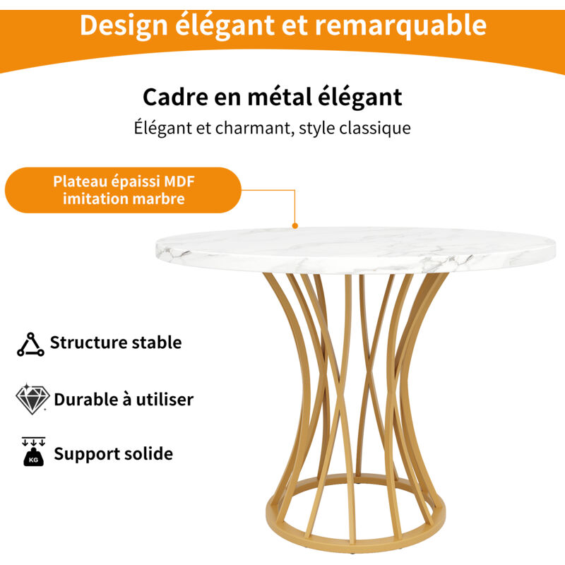 Table Ronde Salle A Manger George Oliver Table à Manger Ronde Pour La Salle à Manger - Canada Table Ronde 90 Cm Idéal pour compenser les irrégularités du sol et éviter les balancements, garantissant un positionnement stable sur parquet, carrelage ou moquette Pas de crainte pour le montage : Grâce à sa structure simple, ses instructions claires, ses pièces numérotées et peu de vis, cette table de salle à manger se monte en 15 minutes ! Transformez votre espace repas grâce à cette table alliant le charme champêtre à l’élégance moderne Découvrez Table à manger ronde 4 à 6 couverts - D 80 x H 76 cm - Plateau en MDF marbré et pièds en métal doré - Blanc or à un prix imbattable Associé à des pieds en métal solide, ce design apporte une touche de luxe discret, parfait pour les salles à manger, cuisines ou espaces de travail Son format compact et son style élégant s’intègrent harmonieusement dans les studios, appartements urbains, bureaux ou coins repas Table Ronde à Manger 80cm - Plateau en MDF Marbré et Pieds Métal Dorés Réglables - Pour 4 Personnes - Idéale Petits Espaces -Blanc - Maison Pieds réglables pour un positionnement parfait sur tout type de sol : Des patins à visser au bas des pieds permettent d’ajuster la hauteur de la table. Cette table à manger ronde est dotée d'un plateau en MDF effet marbre associé à des pieds en métal, lui conférant une apparence élégante qui respire le luxe discret. Les boutons réglables sous les pieds s'adaptent aux différentes surfaces de sol et empêchent la table de vaciller. Poids maximal:60 kg/table, Nombre de colis:1, Remarque: 1., Les mesures étant prises manuellement, il peut y avoir une erreur de 2 à 3 cm, ce qui est normal., 2., Toutes les photos sont prises en nature, en raison de la lumière ou du moniteur, il peut y avoir une légère différence de couleur., 3., Si vous avez des questions, veuillez d'abord contacter notre service clientèle. Ses dimensions compactes permettent de gagner un espace précieux, ce qui le rend idéal pour les salles à manger, les cuisines, les bureaux ou les petits appartements. Cette construction soignée supporte les repas familiaux comme les utilisations prolongées, tout en résistant aux chocs et aux rayures du quotidien Structure stable et durable pour un usage quotidien : La combinaison d’un plateau en MDF résistant et d’un cadre en fer robuste assure une grande stabilité. Sa construction robuste garantit une grande durabilité et une forte capacité de charge, ce qui la rend idéale pour les repas quotidiens ou les réunions de famille.