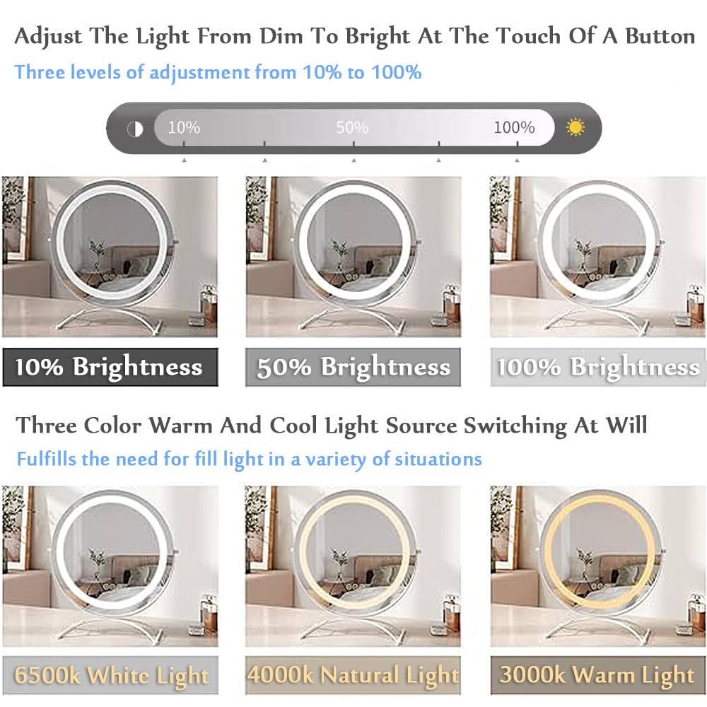 🔌 Alimentation universelle (100-240V) avec adaptateur 12V – INMTFEI Miroir Maquillage Hollywood Compatible dans toute l’Europe, que ce soit dans votre salle de bain, chambre ou studio beauté. EN STOCK : Miroir maquillage lumineux pas cher. Grand choix, promos permanentes et livraison rapide partout en France. Paiement sécurisé Description du produit Miroir INMTFEI : illuminez votre routine beauté L’alimentation stable garantit un éclairage constant et sécurisé. Idéal pour préparer vos soirées entre amies, réussir un maquillage impeccable avant un rendez-vous ou sublimer votre look avant une sortie spéciale. Parfait également pour les studios de photographie, salons esthétiques ou pour créer un coin beauté raffiné à la maison. Le miroir Hollywood pivote à 360° vers le haut et vers le bas, vous permettant de trouver facilement l'angle de vue idéal. Tocador De Maquillaje Con Luz, Luces LED 3 Colores, Estación De Carga 4 Cajones Gabinete Lateral Y Estantes Ajustables Tocadores De Dormito 95619798 💡 Éclairage LED à 3 couleurs (3000K-6500K) – INMTFEI miroir coiffeuse Adaptez votre mise en beauté à chaque moment de la journée. Le miroir de maquillage Hollywood s'ajuste individuellement à votre luminosité et s'adapte à tous les environnements. Surprenez votre femme, votre fille, votre mère ou votre petite amie avec ce miroir de courtoisie élégant et fonctionnel. Miroir de contrôle tactile intelligent pour la vie : interrupteur capteur sur l'écran, il suffit d'allumer/éteindre la lumière LED du miroir de maquillage par le bouton d'alimentation, ajustez la luminosité en appuyant longuement sur le bouton « P », « M » pour changer le mode d'éclairage Miroir Coiffeuse Lumineux INMTFEI Miroir Maquillage Hollywood En Arche Avec LED, 3 Couleurs Éclairage Réglable, 360° Pivotant, Capteur Tactile & Mémoire, Grand Vanity Mirror Pour Coiffeuse, Salle De Bain, Studio Beauté Miroir Ampoules LED de qualité, commande tactile intelligente, fonction mémoire, support métallique robuste, excellent rapport qualité-prix.