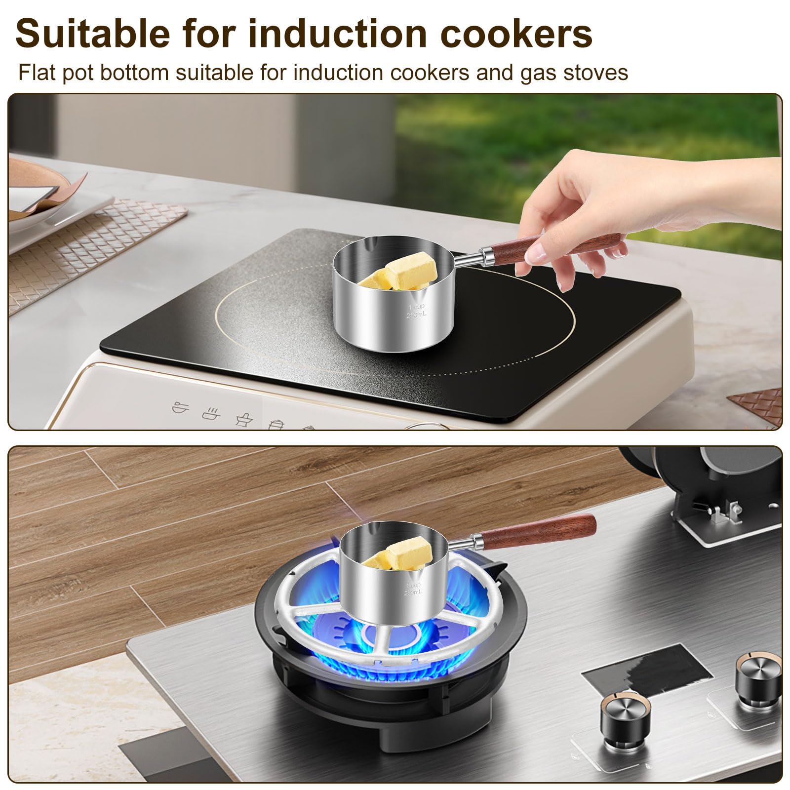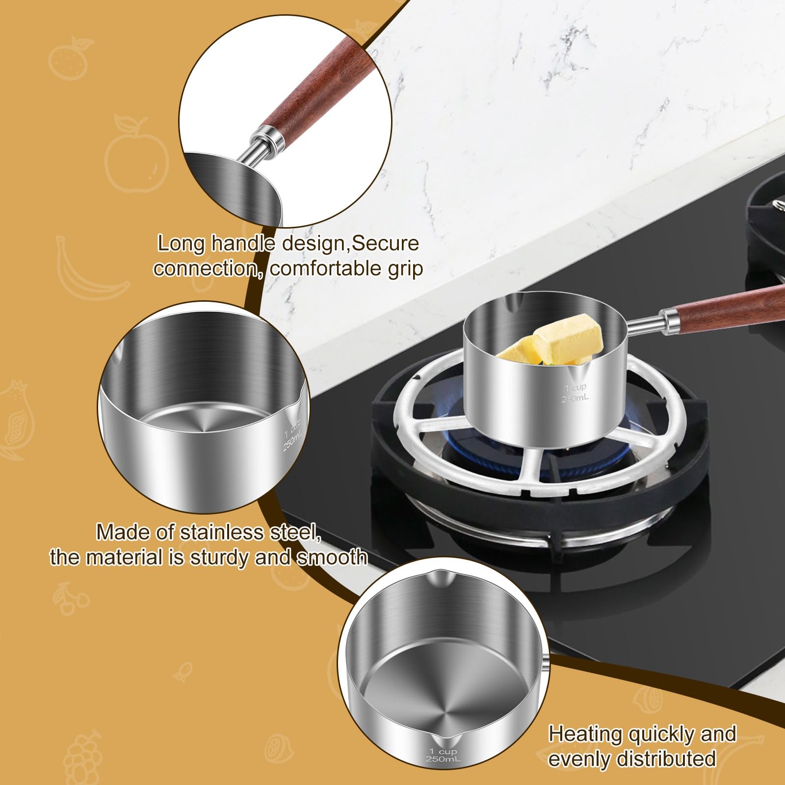Le kit comprend : une poêle à huile de 250 ml et 125 ml avec long manche et 1 support de cuisinière. Description: La casserole en acier inoxydable est un outil de cuisine polyvalent. Grande casserole : Dimensions : longueur totale 20,8 cm, calibre 8 cm, hauteur 5 cm Matériau : acier inoxydable + poignée en bois Capacité : 250 ml. Versement facile : le chauffe-beurre est équipé d'ouvertures de versement des deux côtés qui permettent de verser facilement l'huile, la soupe et le lait sans fuite, assurant ainsi la propreté et la propreté. Le support de cuisinière rond d'un diamètre de 15,5 cm convient à la plupart des cuisinières à gaz. casserole lait induction Comparaison - décembre 2025 | WhichOne Le matériau est robuste, durable, lisse, facile à nettoyer et passe au lave-vaisselle. La poignée est confortable et résistante à la chaleur, ce qui rend l'utilisation plus sûre. Zerone casserole à lait Pot à vapeur alimentaire à double couche en... Chauffe Lait Bec Verseur Casserole à Lait à Induction De 14 Cm, 1,25 L, Avec Bec Verseur, Casserole En Acier Inoxydable Avec Couvercle En Verre, Casserole Universelle En Acier Set 2 Casseroles 125ml Et 250ml Avec Support Support de cuisinière : Dimensions : diamètre extérieur 15,5 cm, diamètre intérieur du cercle central 4,8 cm Matériau : alliage d'aluminium Couleur : argenté Remarque : 1., Il peut y avoir de légères différences entre l'image et la couleur réelle de l'article. Son design multifonctionnel vous permet de faire des sirops, de faire fondre du beurre, de faire fondre du fromage, du caramel et du chocolat, de chauffer du lait, des sauces et des sauces, ainsi que de cuire un seul œuf, etc. La casserole à lait est un ustensile essentiel dans la cuisine pour chauffer le lait de manière uniforme et contrôlée. Dotée d'un bec verseur pratique, elle facilite le transvasement du lait sans risque de débordement Caractéristiques principales : Support de cuisinière inclus : avec le support de cuisinière fourni, vous n'avez pas à vous soucier que les petites casseroles ne soient pas stables sur la cuisinière à gaz. Placez d'abord la grille sur l'ouverture de la cuisinière à gaz, puis placez la casserole d'huile chaude sur la grille. Liste des pièces : 1 petite casserole en acier inoxydable. Le corps épais de la casserole est facile à nettoyer.