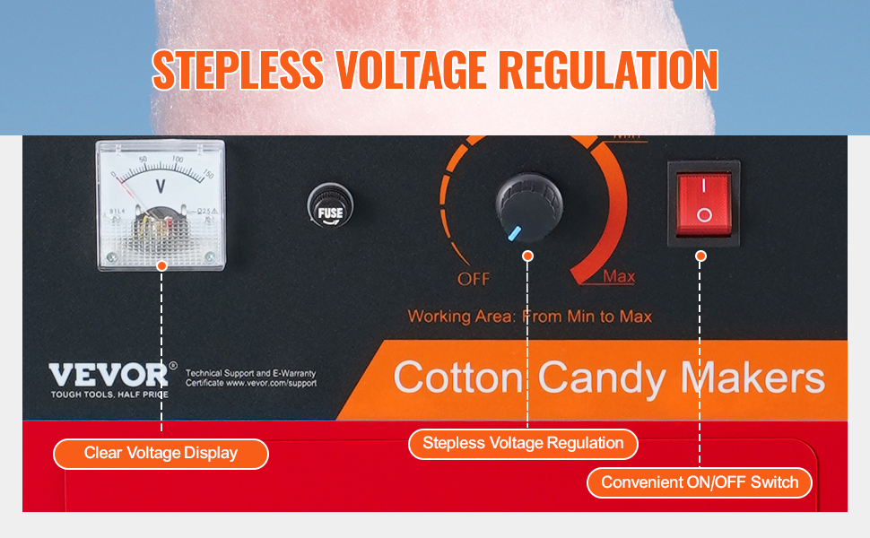 VEVOR Machine électrique à barbe à papa avec chariot, machine à Matériau haut de gamme La machine à barbe à papa électrique est assemblée en acier inoxydable de qualité alimentaire, antirouille et anticorrosion. Travaillez avec n'importe quel bonbon que vous aimez : cette machine à coton vous permet d'utiliser les sucres traditionnels, les sucres de lait, les cubes de fruits ou n'importe lequel de vos bonbons durs préférés pour faire de délicieuses barbes à papa. Rendement de barbe à papa : 6 pièces/min Poids de la couverture : 2,3 lb / 1,06 kg, Puissance nominale : 1000 W Répondez à vos besoins commerciaux : notre machine à barbe à papa commerciale est équipée d'un moteur de 1000 W. · Contrôle de la température Machine à barbe à papa électrique Cette machine à barbe à papa est parfaite pour diverses fêtes et convient à la plupart des types de sucre. Il est capable de fonctionner en continu pendant 1 heure sans blocage ni arrêt, évitant ainsi des arrêts et des nettoyages fréquents. Répondez à vos besoins commerciaux : notre machine à barbe à papa commerciale adopte un moteur de 1000 W. Goût varié Cette machine à bonbons peut produire des barbes à papa colorées avec une variété de goûts. Les grandes roues et la poignée robuste facilitent le mouvement et sont parfaites pour les carnavals, les festivals, les anniversaires et les événements sportifs. Taille de l'article: 20,4x32,3x39,4 pouces / 518x820x1000 mm Matériau du bol à bonbons : acier inoxydable SUS201 de qualité alimentaire. 1 x ensemble d'accessoires Parfait pour les festivals, carnavals, fêtes, événements sportifs et même les réunions familiales et sociales. Le couvercle transparent peut empêcher les objets extérieurs de dériver dans la barbe à papa. Allumez le courant, réglez la température, réchauffez pendant 2-3 minutes et versez le sucre dans la tête rotative, puis il vous suffit d'utiliser les bâtons pour récupérer les barbes à papa de la tête. Contenu du coffret 1 x machine à barbe à papa Contrôle de la température : contrairement aux modèles courants, notre machine à barbe à papa électrique dispose d'un voltmètre et d'un bouton de contrôle de la température. Caractéristiques principales Rendement élevé en barbe à papa Cette machine à barbe à papa est dotée d'un moteur de 1 000 W et d'un bol à bonbons plus grand fournissant environ 6 barbes à papa par minute. Barbe A Papa VEVOR Machine à Barbe à Papa Électrique 1000 W Avec Chariot Machine Barbe à Papa Professionnelle Si vous souhaitez essayer différents sucres aromatisés, vous en aurez absolument besoin. Cette machine à barbe à papa est dotée d'un moteur de 1 000 W et d'un bol à bonbons plus grand, fournissant environ 6 barbes à papa par minute. Machine à Barbe à Papa-VEVOR-Électrique 1000 W-avec Chariot-Appareil à Barbe à Papa Commercial-Couverture Bleue-Acier Inoxydable. En 1 fois. 247,99 Processus d'utilisation facile : l'utilisation de cette machine ne pourrait pas être plus simple.