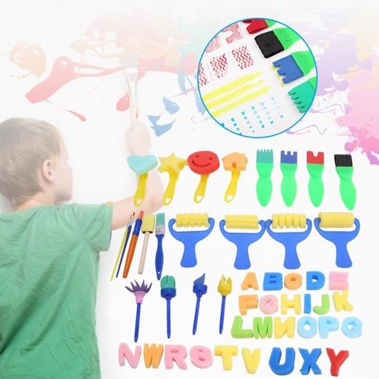 Les poignées légères en EVA ou en plastique assurent un bon contrôle lors de la peinture et favorisent le développement de la motricité fine et de la force de la main de manière ludique Les matériaux sont doux pour la peau et conviennent aux enfants à partir de 2 ans Les enfants peuvent utiliser ces différentes formes et tailles d'outils de pinceau éponge pour dessiner, créer des projets d'artisanat de bricolage et d'autres motifs Pinceaux à peinture en éponge blanche | Rouleau de... – Grandado Réutilisable et facile à nettoyer : tous les outils du kit de pinceaux éponge sont lavables et peuvent être utilisés plusieurs fois. 30 Pièces Eponge Peinture Pinceau,Pinceau en Mousse,Brosse à Eponges Rondes,Pinceaux Éponge Peinture,Mousse Eponge Peinture Ronde,Enfant Peinture Éponge pour Peinture Art Artisanat Poterie Graffiti | Votre wishlist sur Les pinceaux sèchent rapidement, sont faciles à laver et empêchent le contact direct avec la peinture grâce à leur forme de poignée. Il favorise l'imagination, la compréhension des couleurs et l'expression artistique et est idéal pour les premières expériences créatives et les projets de bricolage Outils Peinture Enfants Non Toxiques Lot De 26 Pinceaux De Peinture Pour Enfants - Kit D'outils De Dessin - Pinceaux De Peinture Set De Peinture Enfant Design ergonomique pour les petites mains : chaque partie du kit de pinceaux éponge est conçue de sorte qu'il peut être facilement tenu par les petites mains. Ensemble complet de pinceaux éponge pour enfants créatifs : ce lot de pinceaux éponge contient 34 pièces, 4 rouleaux de brosse éponge, 4 fleurs de balai éponge, 4 brosses plates en éponge, 5 brosses plates, 5 brosses rondes en éponge, 12 éponges à motifs, 1 éponge ronde. Idéal pour peindre ensemble ou créer des œuvres d'art individuelles en jeu avec des amis ou en famille