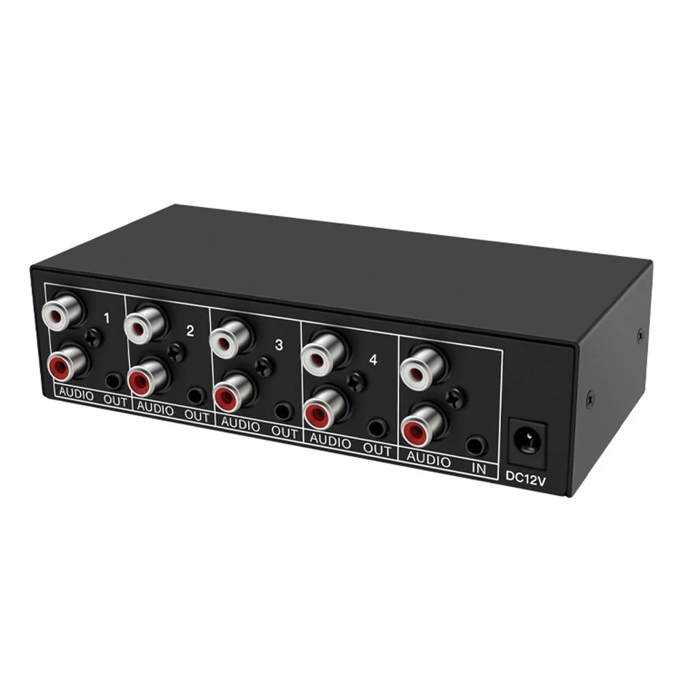 PROZOR - commutateur Audio stéréo RCA bidirectionnel 6 voies, 6 en 1 Commutateur Rca GOTOTOP Répartiteur 2 Entrées 1 Sortie Ou 1 Entrée 2 Sorties Hub Rca Mémoire de mise hors tension : la fonction de mémoire de mise hors tension sera le dernier état après la mise sous tension, ce qui simplifiera grandement l'opération. Fonctionnalité :1., Commutation facile : lorsque vous avez plusieurs appareils audio qui doivent partager des amplificateurs audio ou de puissance, vous pouvez connecter plusieurs appareils en même temps et utiliser leur sortie, ce qui est pratique et pratique sans commutation., 2 . Spécification :Type d'article : Commutateur audioMatériel : ABSEntrée : DC 12VAlimentation de la télécommande : 1 pile bouton CR2025 3V 150MAH, livrée avec pile intégrée. Il est capable de diviser un signal audio stéréo de (1) source vers (4) appareils avec entrées compatibles. Ce répartiteur audio analogique 1X4 fonctionne avec les décodeurs satellite et câble, les lecteurs DVD et autres appareils contenant des connexions audio appropriées Commutation facile : lorsque vous avez plusieurs appareils audio qui doivent partager des amplificateurs audio ou de puissance, vous pouvez connecter plusieurs appareils en même temps et utiliser leur sortie, ce qui est pratique et pratique sans commutation. Commutation facile : lorsque vous avez plusieurs appareils audio qui doivent partager des amplificateurs audio ou de puissance, vous pouvez connecter plusieurs appareils en même temps et utiliser leur sortie, ce qui est pratique et pratique sans commutation Alimentation: alimentation DC 12V, de préférence alimentation linéaire, l'alimentation à découpage est facile à générer du buzz. Comment utiliser : Prend en l'utilisation du connecteur.