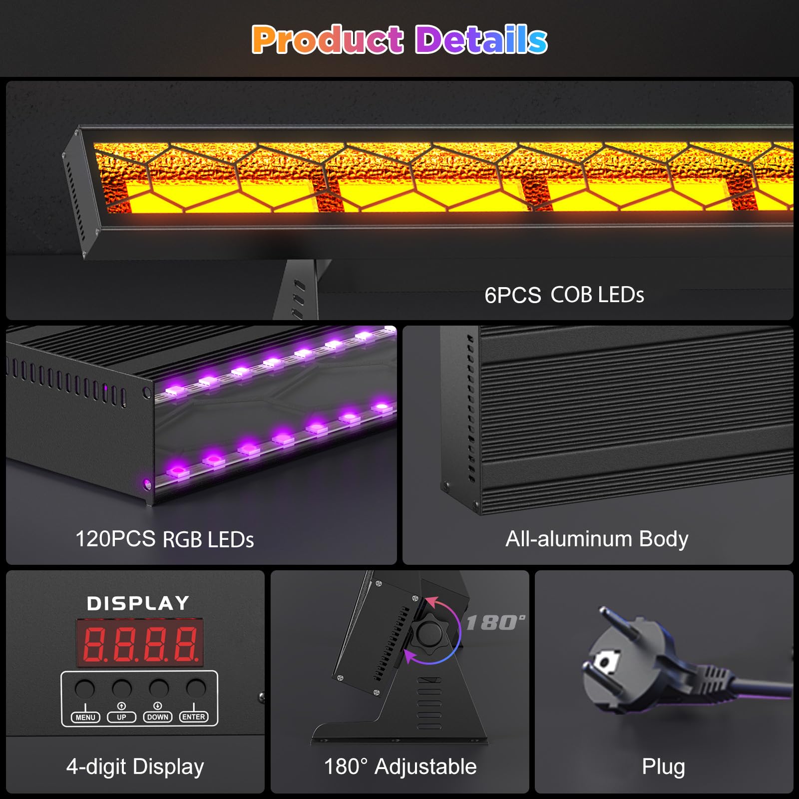Lumiere Soiree Ambiance Dj Barre LED Dmx 150W 666-LEDs Lumière à Pixels Wallwasher Luminaire Professionnel Fête Elle est efficace en termes de dissipation thermique, résistante aux chocs et adaptée à un fonctionnement prolongé. UKing 60W RGBW DMX LED Par party bar ensemble d'éclairage de scène avec trépied réglable, Sac et Télécommande, lumière de fête à 25 degrés pour disco, concerts, mariages, anniversaires, Halloween Projecteur LED 150W SMD Gris Lumière Blanche Froide étanche IP65 | Soléa Ils conviennent parfaitement aux scènes, aux espaces commerciaux et aux lieux de divertissement, et permettent de créer facilement une ambiance lumineuse immersive. Il est recommandé d'utiliser plusieurs unités d'éclairage ensemble pour créer des effets lumineux spectaculaires. Jeu de lumière - Projecteur PARTY-PAR181 PAR à LED 18x1W RGB - 7 canaux Elle peut lire en boucle 254 effets prédéfinis ou verrouiller un mode unique, avec une vitesse réglable, pour s'adapter parfaitement au rythme de différentes scènes. 666-LEDs Lumière à Pixels Wallwasher Vidéo de marchand Canaux de contrôle : CH3, CH9, CH22 ), offrant un impact visuel saisissant. Plusieurs appareils d'éclairage peuvent être assemblés de manière transparente pour former un mur lumineux ; simplification du câblage, adaptation à divers scénarios. 【Extension transparente et installation pratique】Cette barre LED est équipée d'un système de verrouillage rapide illimité, ce qui permet d'étendre le nombre d'appareils de manière transparente. 【Contrôle flexible multi-modes】Cette barre led lumineuse prend en charge quatre modes de contrôle : ①autonome, ②contrôle vocal, ③maître-esclave ④connexion à un contrôleur. En la connectant à une console de contrôle, vous pouvez créer divers programmes de variation d'éclairage selon vos besoins.