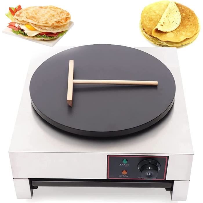 Haut rendement : la puissance élevée de 3 kW, le grand moule de cuisson (diamètre : 15,75 pouces) et le chauffage complet garantissent que le produit chauffe rapidement et uniformément, de sorte qu'il réagit facilement aux tâches de cuisson et améliore l'efficacité. Étape 2 : utilisez la spatule en bois pour étaler la pâte en un mouvement circulaire. Étape 4 : profitez de votre crêpe. Contenu de la livraison : 1 appareil à crêpes électrique., 1 spatule en bois. KRAMPOUZ Crêpière Électrique BILLIG - Plaque en Fonte Usinée Diamètre Comment faire des crêpes ? Étape 1 : versez la bonne quantité de pâte sur la surface préchauffée. Diamètre du moule : 40 cm. Affichage : l'indicateur de puissance et de chaleur facilite l'observation de l'état de fonctionnement et facilite l'utilisation. Facile à utiliser : il suffit de le brancher, de régler la bonne température avec le bouton rotatif et vous pouvez préparer une variété de plats délicieux. Source d'alimentation: électrique avec câble Type de prise : norme européenne Tension : 220 V, 50 Hz., Puissance : 3 kW. Appareil à crêpes électrique de 40 cm - 3000 W - Avec réglage de la température de 50 à 300 °C - Pour crêpes, pancakes, omelettes, jambon palaté ; Quantité Traitement de surface : revêtement antiadhésif, polissage Type de support : plateau de table Assemblage requis : non. Même les débutants peuvent commencer rapidement sans instructions compliquées. Crêpière pour Mini crêpes & Pancakes 1500 Watts Techwood /product/techwood poele a crepes crepiere par 8 tcp 800/4764... Boîte de rangement amovible : le tiroir est conçu pour être facile à nettoyer et ne goutte pas sur le plan de travail. Couleur : argenté et noir. Caractéristiques techniques : Style : moderne., Forme : rectangulaire. Température réglable : avec un régulateur de température, la température peut être réglée dans la plage de 122 à 572 ℉ pour répondre aux exigences spéciales des différents ingrédients et méthodes de cuisson et offrir des possibilités de production alimentaire créative. Plaque à Crêpes 40 Cm Antiadhésive Crêpière, 220V SX-450P 45 Cm Plaque Crêpière, Professionnelle Crêpière Pour Crêpes, Pancakes, Omelettes, Jambon Palaté Plaque Chauffante Réglable Utilisation : Ce produit est adapté pour la préparation de crêpes, crêpes, œufs au plat, tortillas, bacon, saucisses, etc. Bonne dissipation de la chaleur : les trous de dissipation de la chaleur garantissent que l'appareil ne surchauffe pas pendant l'utilisation et prolonge sa durée de vie, ce qui augmente la sécurité lors de l'utilisation. Spatule en bois pratique : avec son aide, vous pouvez répartir uniformément les œufs, crêpes, etc. Profitez de la délicatesse : il vous aide à préparer des desserts comme des crêpes occidentales ou des crêpes chinoises et à profiter de la collision de la cuisine chinoise et occidentale !