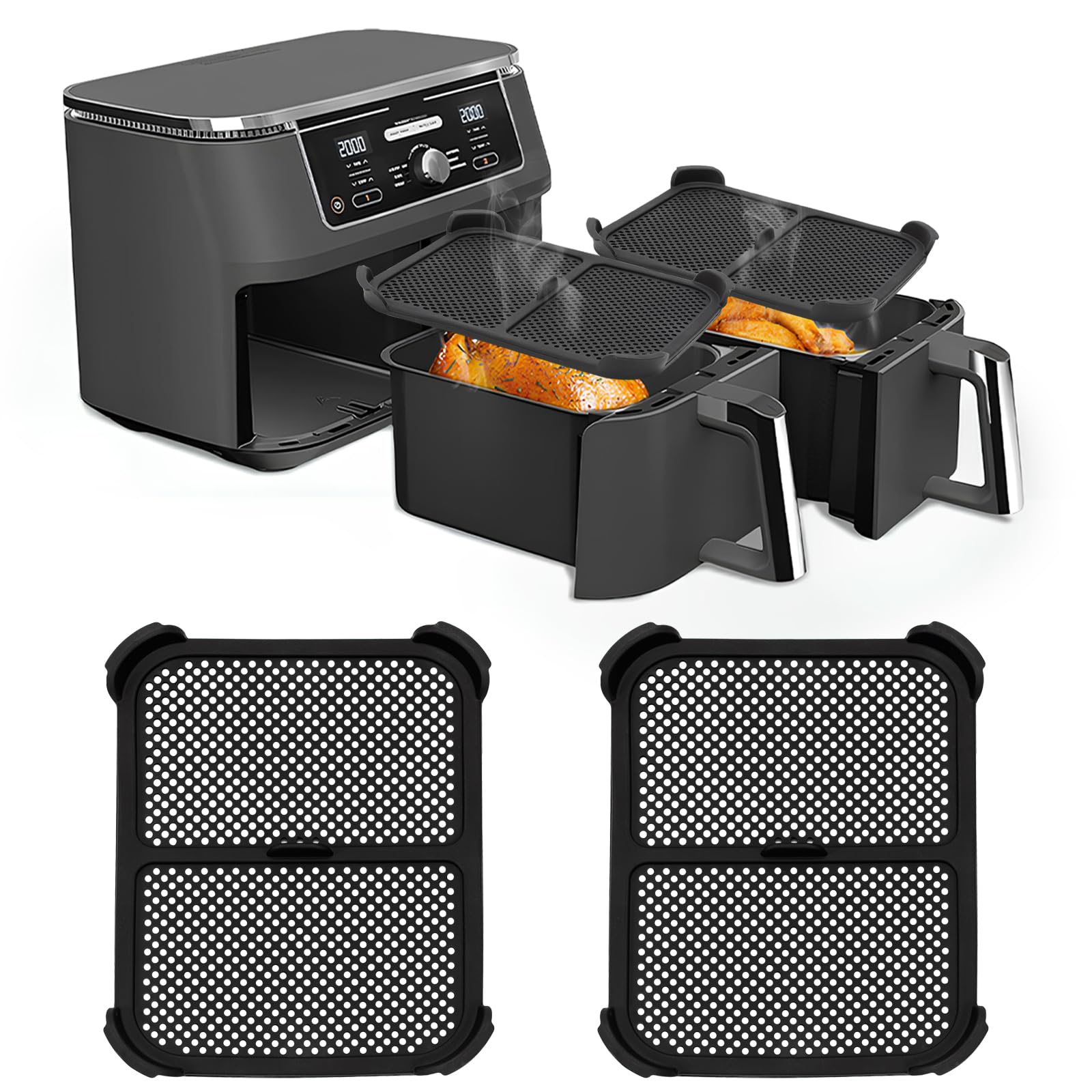 Veuillez laisser refroidir avant de le retirer. Ninja Foodi MAX Dual Zone Air Fryer, 2 Tiroirs, 9,5L, 6-en-1, Sans Parfaite compatibilité] Cette Air fryer Grille Anti Projection est exclusivement conçue pour les friteuses à air Ninja Foodi Max Dual Zone AF400EU et AF451EU. Elle s'adapte parfaitement, garantissant une compatibilité totale aucun glissement pendant la cuisson Lavage à la main uniquement recommandé. Le pare-éclaboussures à mailles fines pour Ninja Airfryer offre non seulement une protection, mais aussi une longue durée de vie en cas d'utilisation régulière. (Les aimants résistants aux hautes températures sont fragiles., ) Remarque : attendez que l'appareil ait refroidi avant de le retirer. La protection anti-éclaboussures en acier inoxydable pour Ninja Airfryer réduit le temps de cuisson et garantit des résultats uniformes sans perte d'énergie. Description du produit Pare-éclaboussures pour friteuse à air chaud Ninja Foodi Max Dual Zone Airfryer., Accessoire Ninja Foodi Max 2 Pièces Magnétique Grille Anti Projection Pour Ninja Foodi Max Dual Zone Air Fryer Af400Eu&Af451Eu,Grille Anti Eclaboussure Cuisi - Maison Ninja Crispi Le filet fin de l'accessoire pour friteuse à air chaud Ninja est fabriqué en acier inoxydable résistant à l'huile et à la corrosion, et l'extérieur est équipé d'un anneau en silicone alimentaire qui peut empêcher les brûlures lors du retrait dans la chaleur résiduelle (mais ce n'est pas recommandé). Le pare-éclaboussures en acier inoxydable est doté d'une fixation magnétique pour une installation facile et sans outil, un ajustement parfait et une protection... Le kit comprend deux pare-éclaboussures en acier inoxydable pour Ninja Airfryer, idéal pour les ménages qui font régulièrement des fritures. Circulation D'air Optimale pour une Cuisson Uniforme : grâce à sa conception en filet, le pare-éclaboussures à mailles fines pour Ninja Airfryer assure une circulation d'air sans restriction. Protection efficace contre les éclaboussures alimentaires : la conception en filet fin protège efficacement contre les éclaboussures de graisse et d'aliments sur la spirale chauffante, ce qui résout le problème des tubes chauffants difficiles à nettoyer et prolonge leur durée de vie. Compatibilité Parfaite avec les Modèles Ninja : cet accessoire pour friteuse à air chaud Ninja Airfryer a été spécialement conçu pour les modèles Foodi Max Dual Zone AF400EU et AF451EU Airfryer. Grâce à sa fixation magnétique, le pare-éclaboussures à mailles fines pour Ninja Airfryer est stable et ne glisse pas pendant la friture. Le matériau du pare-éclaboussures en acier inoxydable pour Ninja Airfryer reste stable et sûr, même à haute température. Protection Efficace Contre les éclaboussures de Graisse : le pare-éclaboussures à mailles fines pour Ninja Airfryer protège efficacement les éléments chauffants contre les éclaboussures d'huile et les résidus alimentaires, ce qui facilite considérablement le nettoyage et l'entretien. Compatible avec la friteuse à air chaud Ninja : cet accessoire pare-éclaboussures est parfaitement compatible avec Ninja Foodi Max Dual Zone AF400EU & AF451EU Airfryer et se cache facilement sous les serpentins chauffants afin de protéger l'unité de chauffage à l'intérieur de la friteuse.