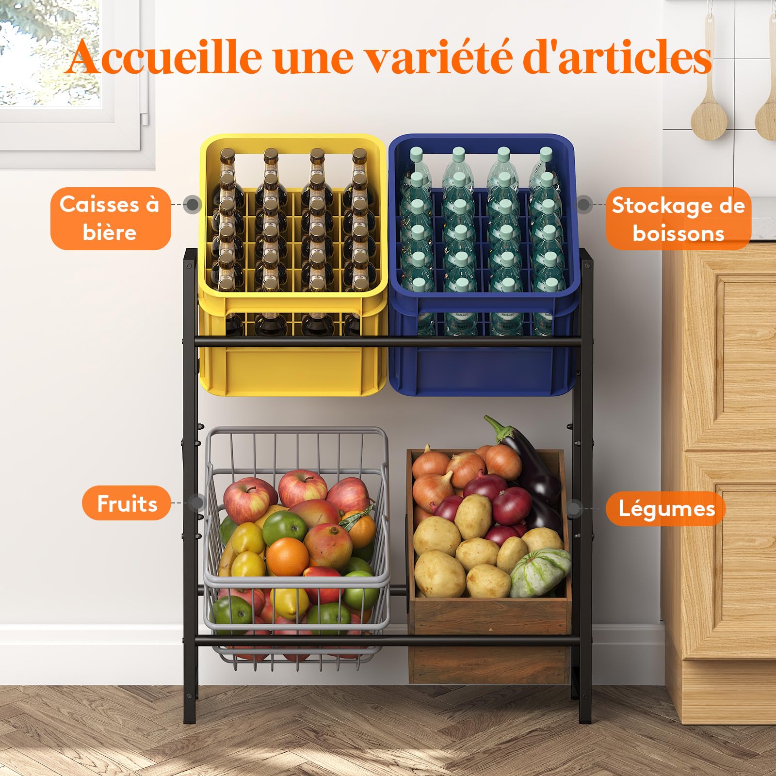 Rangement Bouteille TTLIFE Etagère à Boissons Pour 6 Caisses, Etagère Casier à Boissons Rangement Garage 150 Kg Notre casier est doté de quatre roues universelles avec freins en caoutchouc silencieux, garantissant des déplacements discrets. Sa structure triangulaire robuste, renforcée par des entretoises, assure une stabilité optimale pour le rangement des caisses. Montage Facile · Avant de commencer, lisez attentivement le manuel et visionnez la vidéo de montage pour un résultat optimal. L'inclinaison pratique facilite l'accès aux bouteilles et simplifie l'organisation. Montage Simple : Le casier est livré avec des instructions de montage claires, les outils nécessaires et une vidéo explicative. Une conception astucieuse pour optimiser l'espace disponible. Optimisation de l'Espace : Le casier mesure 70 x 32 x 85,5 cm, occupant un minimum d'espace au sol tout en offrant un grand volume de rangement grâce à ses multiples étagères. Haute Capacité de Charge · Avec ses dimensions de 70 x 32 x 85,5 cm, ce casier offre une capacité de charge exceptionnelle de 150 kg par niveau. Rayonnage Pour Caisses De Boissons 4 Caisses 91x31x75,5 Cm Anthracite En Metal Ml Design Parfait pour toutes les situations! SWANEW 4x Étagère à caisses de boissons Rack à boissons Métal pour... 4 Roulettes Industrielles : Le casier à boissons est doté de quatre roulettes industrielles avec freins. Solution Polyvalente pour Tous Vos Besoins Polyvalent : Ce casier à boissons multifonctionnel trouve sa place dans la cuisine, la salle à manger, le cellier, la cave, le balcon ou le garage. Renfort en X L'étagère est équipée d'un renfort en X qui améliore la stabilité et évite tout basculement. Accès Facile L'angle d'inclinaison optimal permet un accès facile et un rangement pratique de vos bouteilles. Les roues en caoutchouc à faible bruit assurent un déplacement silencieux. Etagère à Boissons avec roulettes pour 4 caisses,Etagère à Boissons en métal, capacité de Charge 150KG/couche, Peinture Anti-Rayures, étagère à caisses Stable pour bière, légumes, Eau Idéal pour ranger fruits, légumes, snacks et pain. Grâce à leur rotation à 360°, le rangement s'adapte facilement à tous les espaces.