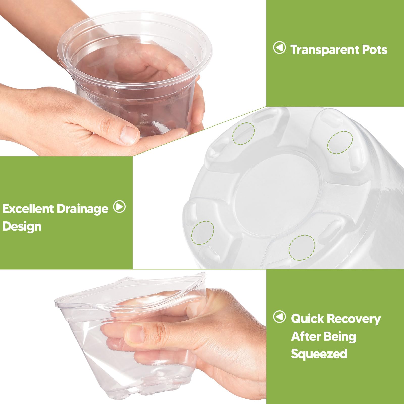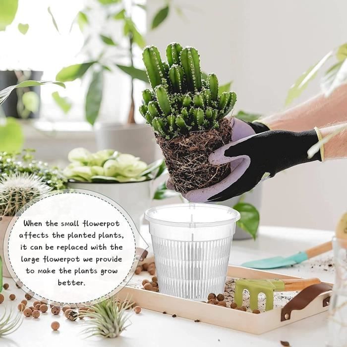 Fabriqués en acrylique robuste, les pots transparents faciles d'entretien garantissent un entretien facile et des performances fiables pendant de nombreuses saisons. Les pots troués transparents permettent un drainage optimal et de surveiller les racines et l'humidité du substrat. Ils sont parfait pour les Orchidées, Hoya, Aroids et autres plantes tropicales Description du produit Les pots transparents en acrylique offrent une solution pratique pour la culture en intérieur et le jardinage. Attention de qualité supérieure : pot de fleurs transparent robuste au design intemporel et moderne qui relie les gens à la nature. Le design bien pensé de ces pots transparents ajoute sans effort de l'élégance aux pièces grâce à sa forme adaptable et à son aspect raffiné. Optimisé pour tous les domaines : idéal pour mettre en valeur les rebords de fenêtre et les bureaux avec des semis, des plantes succulentes ou des fleurs. 15,24 x 15,24 x 12,7 cm - Plateau pour 17,02 x 17,02 x 3,05 cm. Lot de 10 pots de fleurs transparents avec drainage, parfaits Durabilité de qualité supérieure : utilisation optimale de la lumière du soleil pour les plantes grâce au design translucide. Caractéristiques du produit : Nom : jardinière acrylique Matériau : acrylique Couleur : transparent. Régulation intelligente de l'humidité : la conception du drainage de l'eau empêche l'excès d'arrosage, soutient la santé des racines et assure une circulation constante de l'air pour une vitalité des plantes à long terme Les pots d'extérieur translucides sont une façon élégante et moderne de mettre en valeur vos plantes. La durabilité du maquillage, de l'acrylique ou du verre permet à ces pots de survivre à l'extérieur, tout en offrant une belle vue sur les racines et la terre de la plante Soucoupe Pot Fleur DAWCBVJQ Pots De Fleurs Transparents Avec Drainage Pots Avec Soucoupe Intégrée Liste des produits : 1 pot transparent pour plantes.