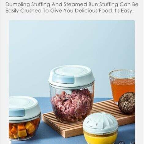 Petite taille : 9 x 9 x 6,5 cm Capacité : 200 ml, 280 ml, 350 ml Il est parfait pour la cuisine chinoise, occidentale, japonaise ou coréenne et vous aide à créer des plats qui répondent à différents besoins nutritionnels. Dites adieu aux techniques de talon désordonnées et fastidieuses. Transformez votre temps de préparation de l'ail avec notre petit moulin à ail manuel ! Idéal pour couper des petits aliments tels que les oignons, les herbes, les uits, les légumes, les noix, les morceaux de viande brute et de nombreuses autres... Hachoir à légumes manuel, pour aliments, viande, herbes, ail, salade Diverses utilisations : notre manuel de hachoir à ail est fabriqué à partir de matériaux durables tels que l'ABS, le PP et l'acier inoxydable de haute qualité, et permet une préparation simple et efficace de différents ingrédients. Facile à démonter et à nettoyer après chaque utilisation pour un hachoir impeccable. Grâce aux lames pointues, le broyage fin de l'ail, du gingembre, du poivron et plus encore devient un jeu d'enfant, préservant ainsi le goût et l'odeur de vos ingrédients. Préparation rapide des aliments : avec ce petit moulin à ail manuel, vous pouvez couper et hacher l'ail rapidement et facilement, économisant ainsi du temps et des efforts. Robot Culinaire Mini Hachoir Design Amovible Mini Hachoir à Oignons Manuel - Hachoir à Légumes - Acier Inoxydable Lames Inox Hachoir Hachoir à poulet rotatif de cuisine, hachoir manuel pour poitrine de poulet, adapté pour hacher les aliments, la viande et les légumes (noir). 22,67 Cet outil durable est équipé de sculptures tridimensionnelles délicates et est parfait pour l'ail, le gingembre et les poivrons. Matériau du produit: ABS, PP, acier inoxydable , Couleur : vert, bleu Le design amovible rend le nettoyage facile ! Description du produit Hachoir à ail manuel,Petit minceur de hachoir à ail Vous économisez du temps et des efforts à chaque utilisation et de la coupe tridimensionnelle rapide et délicate. Facile à nettoyer : le design amovible de notre manuel de hachoir à ail garantit qu'il ne reste aucun résidu alimentaire et est facile à nettoyer, ce qui le maintient hygiénique.