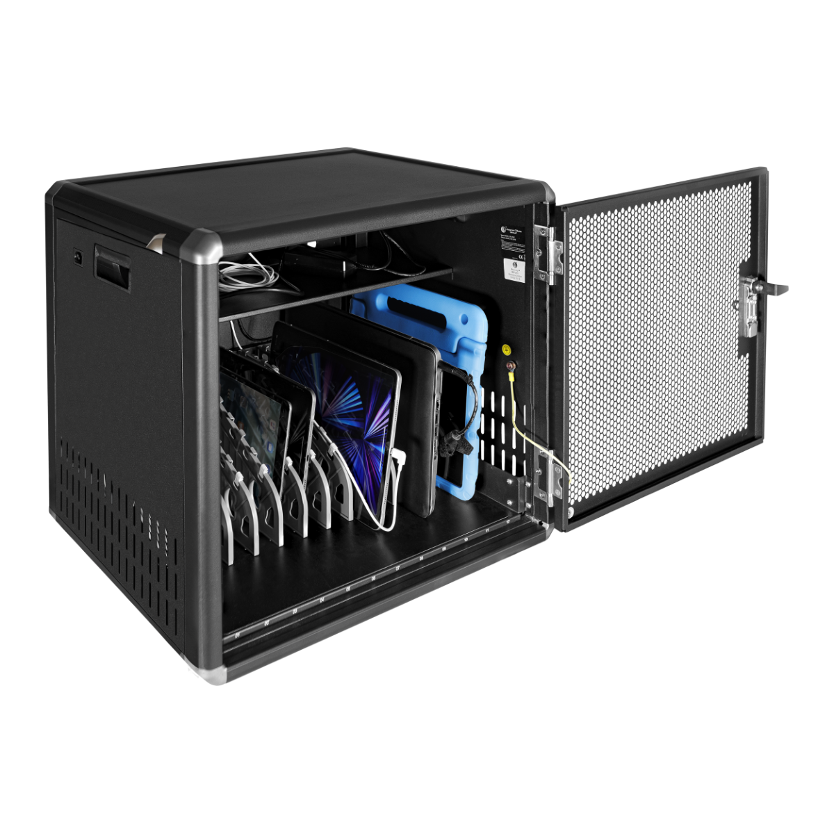 Dimensions du boîtier (14) : 2,3 x 30 x 25,5 cm., Couleur : noir Bloc mural de recharge rapide Revolve MAX 60 pour téléphones, tablettes Armoire de recharge Sécurisée pour Ordinateurs Portables, tablettes ✅ Comprend deux prises d'alimentation I-CASE STRIP-81U avec 8 prises universelles Schuko/italiennes 45° avec terre, fiche italienne 16 A, 250 V AC et interrupteur lumineux ✅ Station de charge pour appareils mobiles : permet de ranger et de charger jusqu'à 14 appareils ; compatible avec iPad, Chromebooks, Ultrabooks, Netbooks, MacBooks, tablettes, smartphones et bien plus encore Techly, Pour tablettes et smartphones. Les meilleurs prix pour en France!Distributeur des dispositifs réseau, des serveurs et des logiciels ✅ Entièrement assemblé, construction en acier ; comprend 4 pieds de nivellement pour le positionnement au bureau/au sol ; prédisposition pour l'installation au mur Techly Pro Charging Cabinet 14 emplacements Armoire Métallique Pour école Bureau Armoire De Recharge à Casiers Pour PC Portables Tablettes Station Charge Ordinateurs Tablettes Smartphones