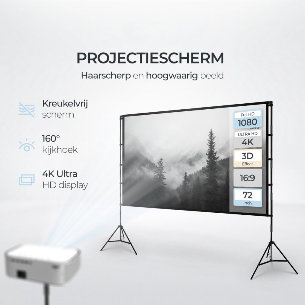 La boucle de réglage centrale permet d'ajuster la hauteur intuitive et de réduire l'encombrement une fois le trépied replié. La couche arrière en PVC noir bloque la lumière parasite pour restituer des images d'une vivacité exceptionnelle. Un trépied élargi, couplé au kit d'ancrage (cordes et piquets), confère à l'ensemble une résistance au vent accrue. À l'extérieur, ancrez-le solidement à un objet fixe (comme un arbre) en attachant ses quatre coins à l'aide des cordes fournies. Quatre tubes partant du moyeu de fixation forment un cadre robuste et bien tendu. Écran de projection portable avec support, écran de cinéma extérieur, 80 16:9, léger, mobile et compact, installation et transport faciles, écran de projection avec fibre de verre gain 1,2, idéal Le montage sur trépied est rapide et intuitif, sans besoin d'outils ou de vis. Utilisez-le également en intérieur ! Le format en 16:9 de notre écran est idéal pour une expérience home cinema immersive. Cet écran de projection vous permet de profiter pleinement de vos films et vidéos préférés. Le BPS80 convient également parfaitement aux présentations en entreprise, salles de conférence et salles de classe écran Avec Support Et Trépied Écran De Projection Extérieur 80 Pouces 16:9, Écran De Projection Avec Support, Gain Élevé, Résistant Au Vent, Écran Pour Projecteur, Pour Home Cinéma, Jardin Et Camping, Cordages Et Piquets Inclus écran 80 Pouces 16:9 Avec Support Profitez de vos séances en extérieur sans crainte des intempéries. Un Véritable Écran de Projection Extérieur. Écran de projection HD 4K pour cinéma extérieur MIXITO - Test et Avis Des barres latérales intégrées assurent la verticalité de l'écran. Écran de Projection avec Pied. Sa structure 5 couches, renforcée par de la fibre de verre, assure une excellente luminosité et une surface parfaitement plane. Une polyrité idéale pour toutes vos envies.