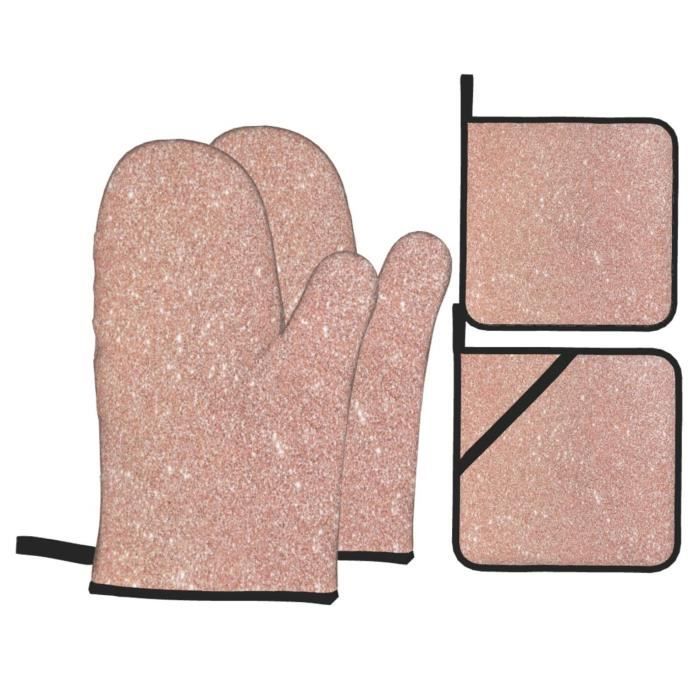 Ensembles de Gants de Four et de Porte-casseroles, Couleur Unie Rose, Ensembles de 4 Gants de Four et maniques résistants à la Chaleur pour la Cuisson du Barbecue Gants Confortables Anti-dérapants Gants De Four, Gants De Barbecue, Support De Poêle Avec Motif Rose Gants De Cuisine Gardez vos mains au sec pendant la cuisson, utilisez de manière plus flexible et profitez d'une expérience de cuisine confortable Que vous soyez un chef amateur passionné, un amateur de barbecue ou quelqu'un qui aime cuisiner, ces gants de cuisine à imprimé rose violette sont là pour vous. Que ce soit pour la cuisine quotidienne en famille ou les pique-niques en plein air, cet ensemble vous permet de manipuler des articles chauds avec facilité Scénarios d'application : les gants de cuisine imprimés sont parfaits pour la cuisine ou le jardin tels que la cuisine, la pâtisserie, les pique-niques et les grillades Design : la surface des gants de cuisine est recouverte d'une texture spéciale, ce qui améliore la friction avec divers ustensiles de cuisine pour empêcher les articles de glisser Nos gants de cuisine sont recouverts de silicone imprimé sur le manique, ce qui les rend plus faciles à manipuler. Largement utilisé pour la cuisine, le barbecue, le four à micro-ondes, la soupe et ainsi de suite pour vous protéger des brûlures à la vapeur, et vous pouvez avoir un temps de cuisson facile et sûr Vous ne vous sentirez pas étouffé même après une utilisation à long terme. Ensemble de 4 pièces : cet ensemble répond à tous vos besoins pour une utilisation en cuisine, barbecue, pâtisserie, etc.